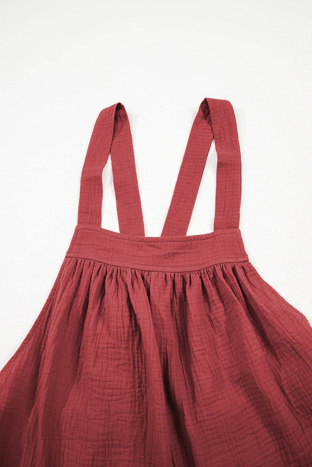 - This jumpsuit features a knotted back straps for a playful look.