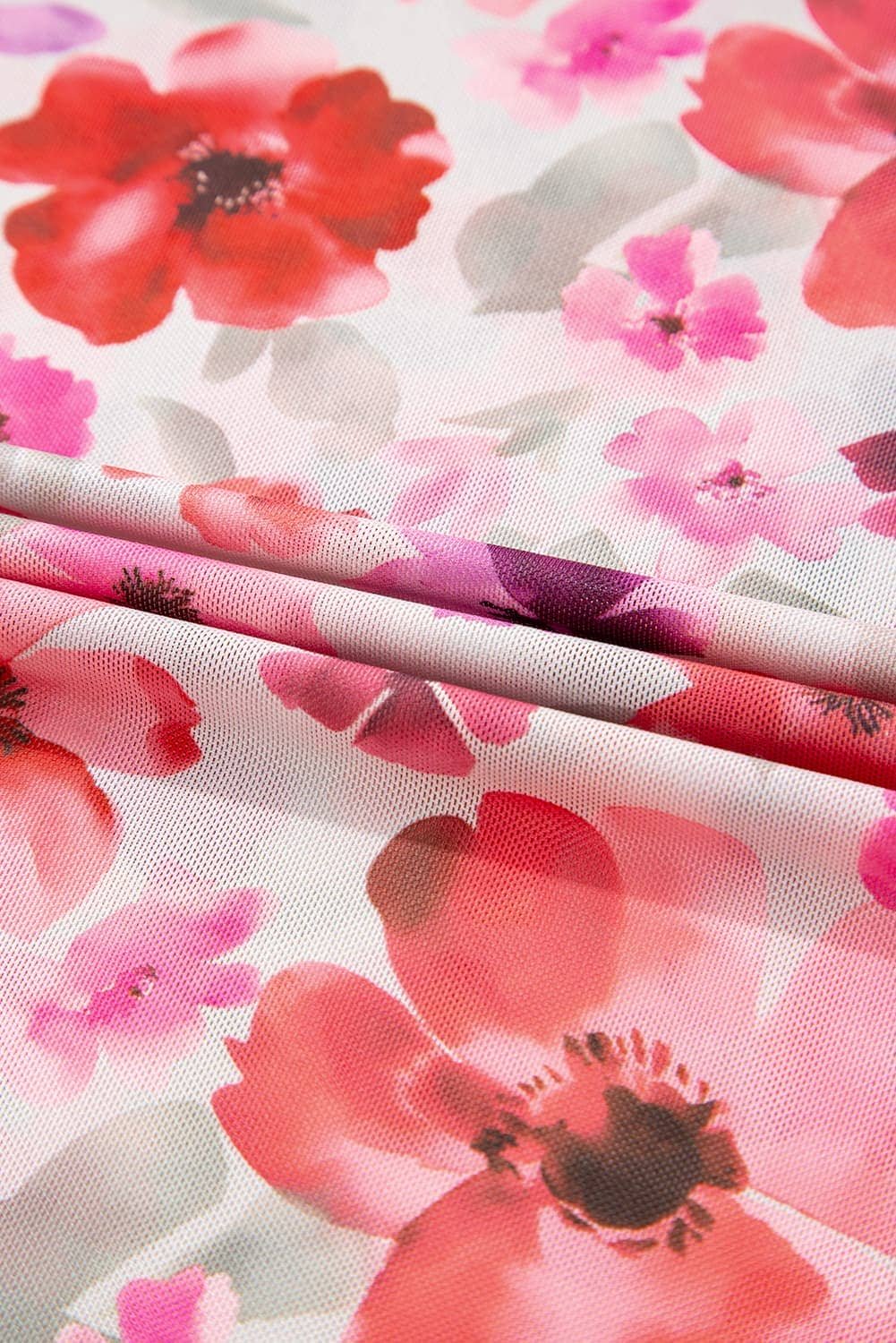 Be the first to review “Red Floral Print Long Sleeve Slim Fit Mesh Top”