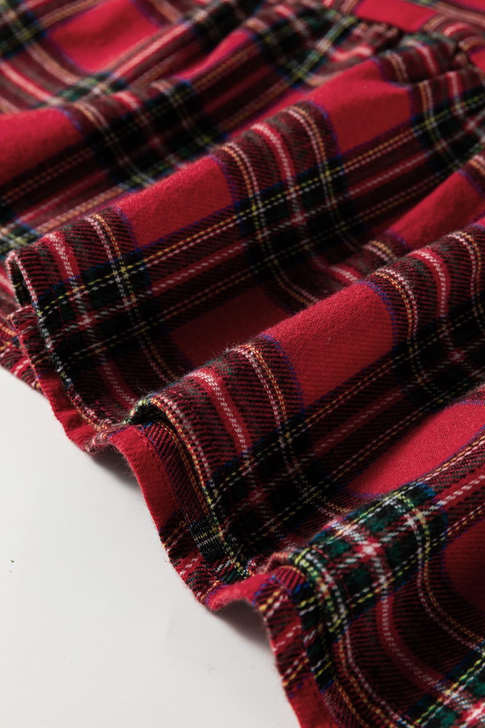 Be the first to review “Red Plaid Shirt Collar Half Button Ruffle Hem Long Sleeve Mini Dress”