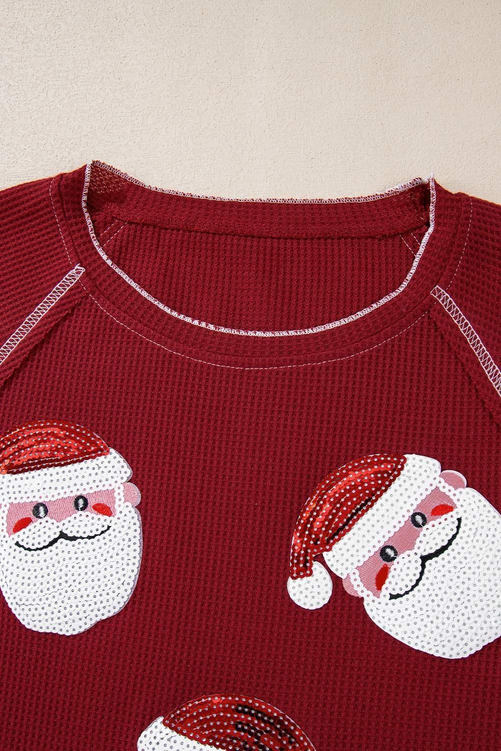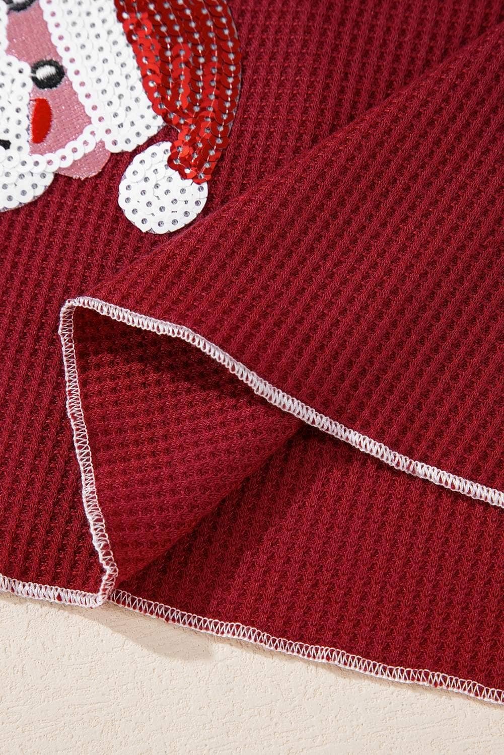 Sequins add a touch of sparkle to mercy Santa Claus patterns.