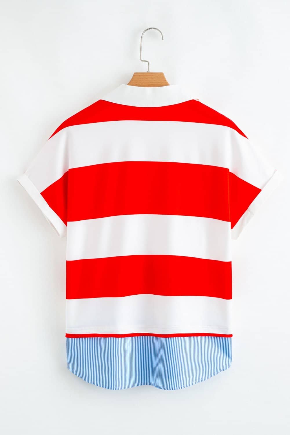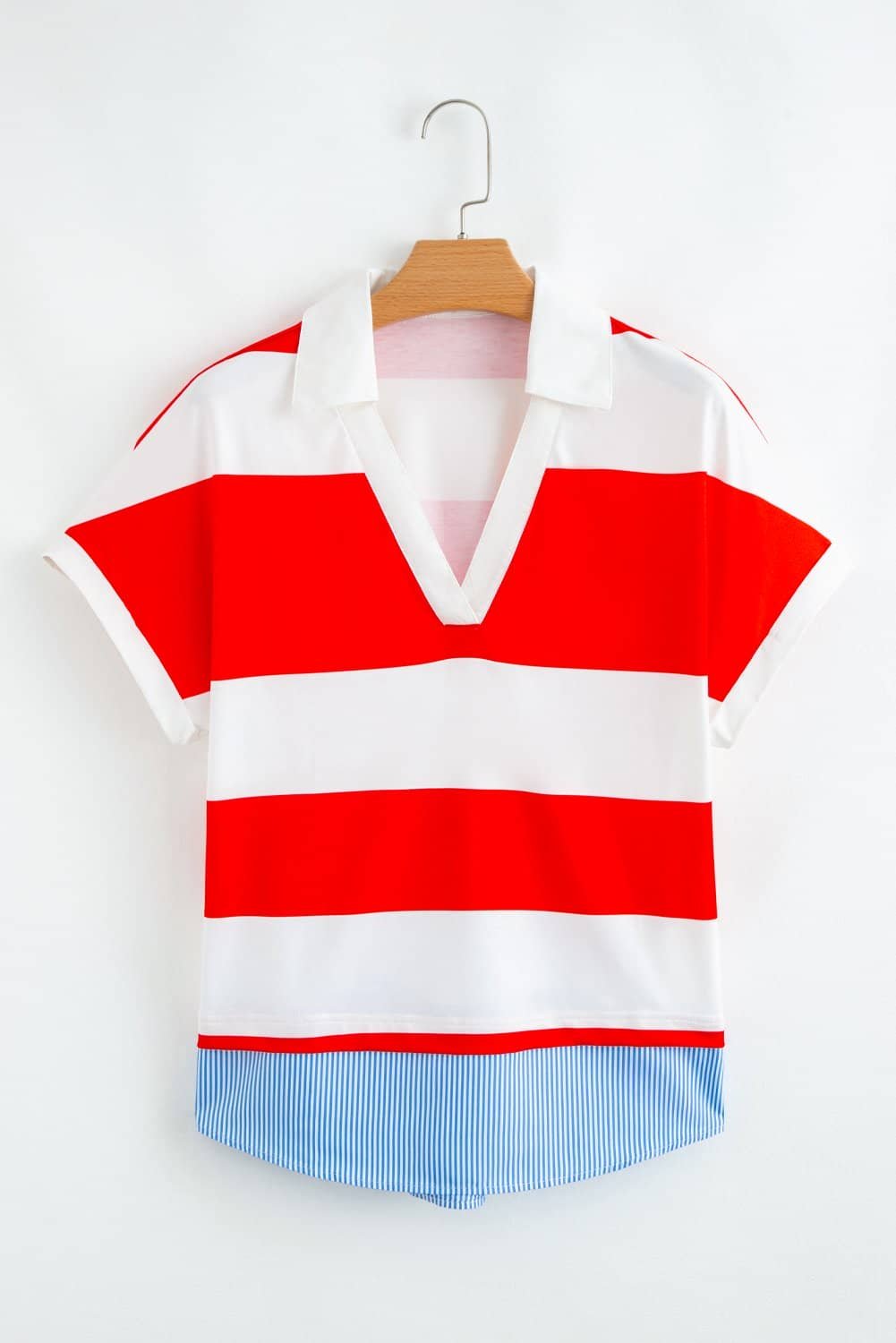 - Color-block stripes add a stylish touch to this blouse with dolman sleeves.