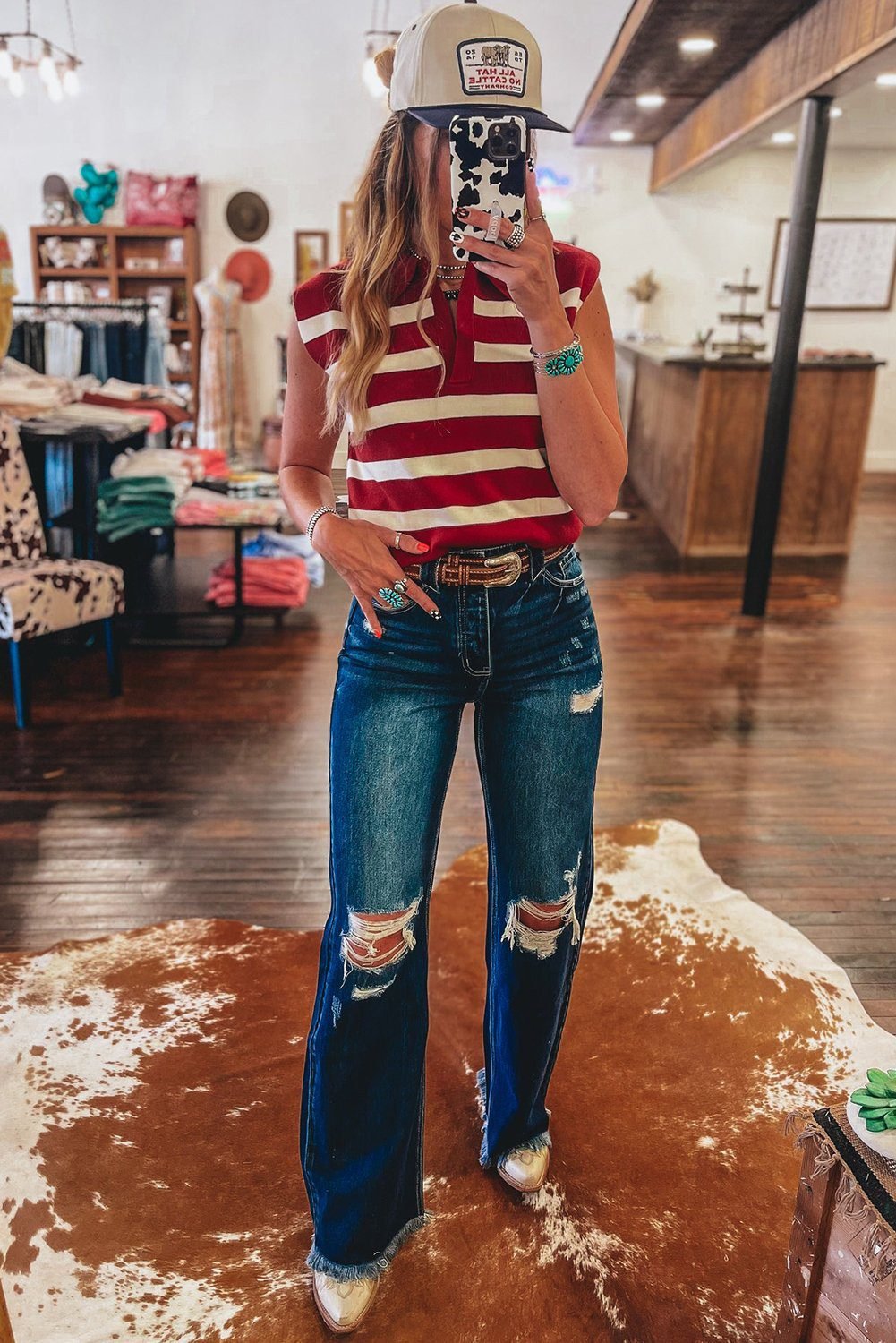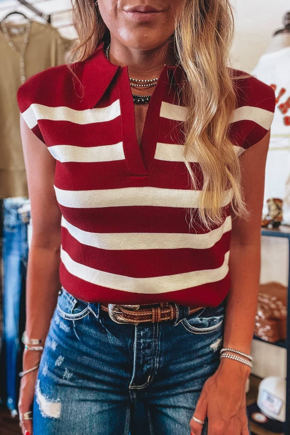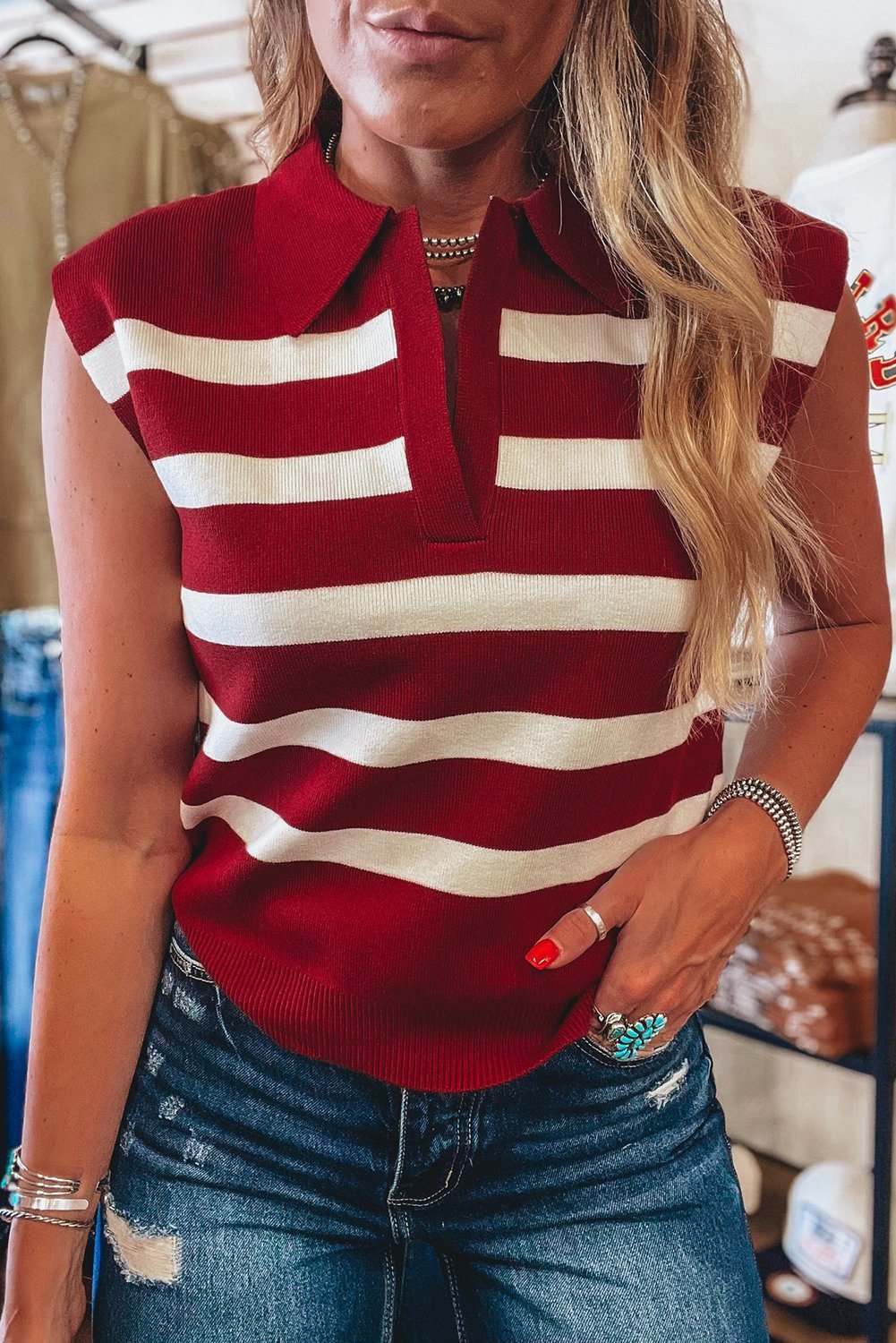 Be the first to review “Red Stripe Collared Split Neck Sweater Vest”