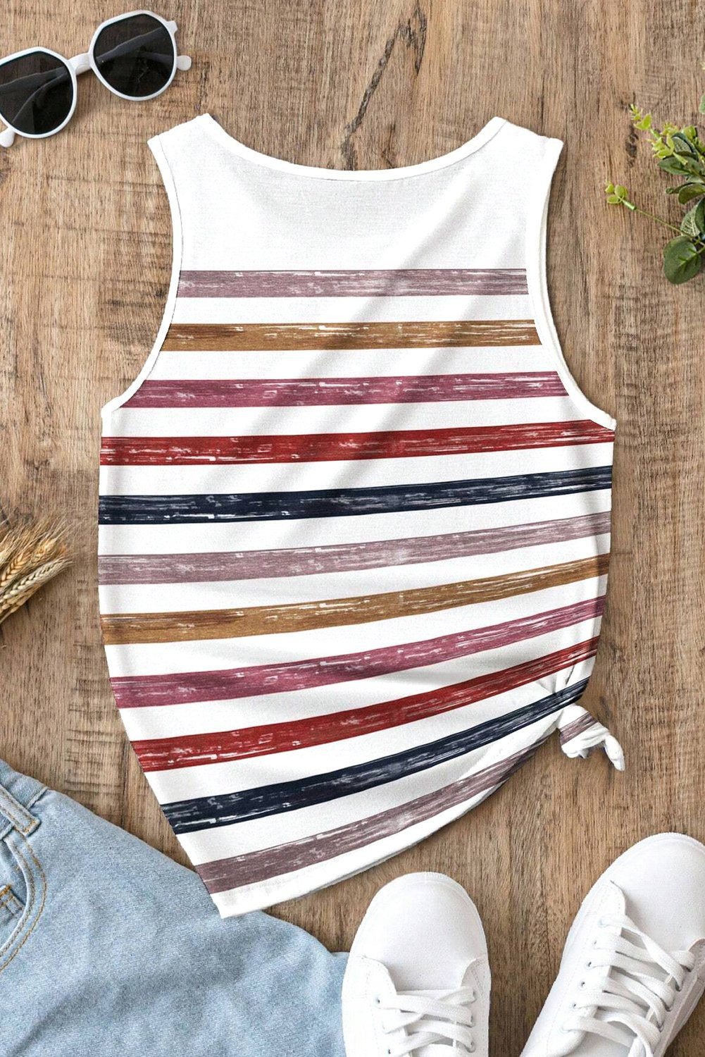 - Brighten up your wardrobe with this rainbow-striped tank top.