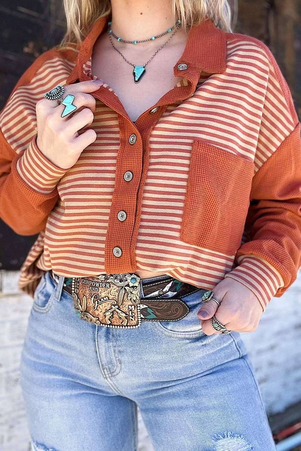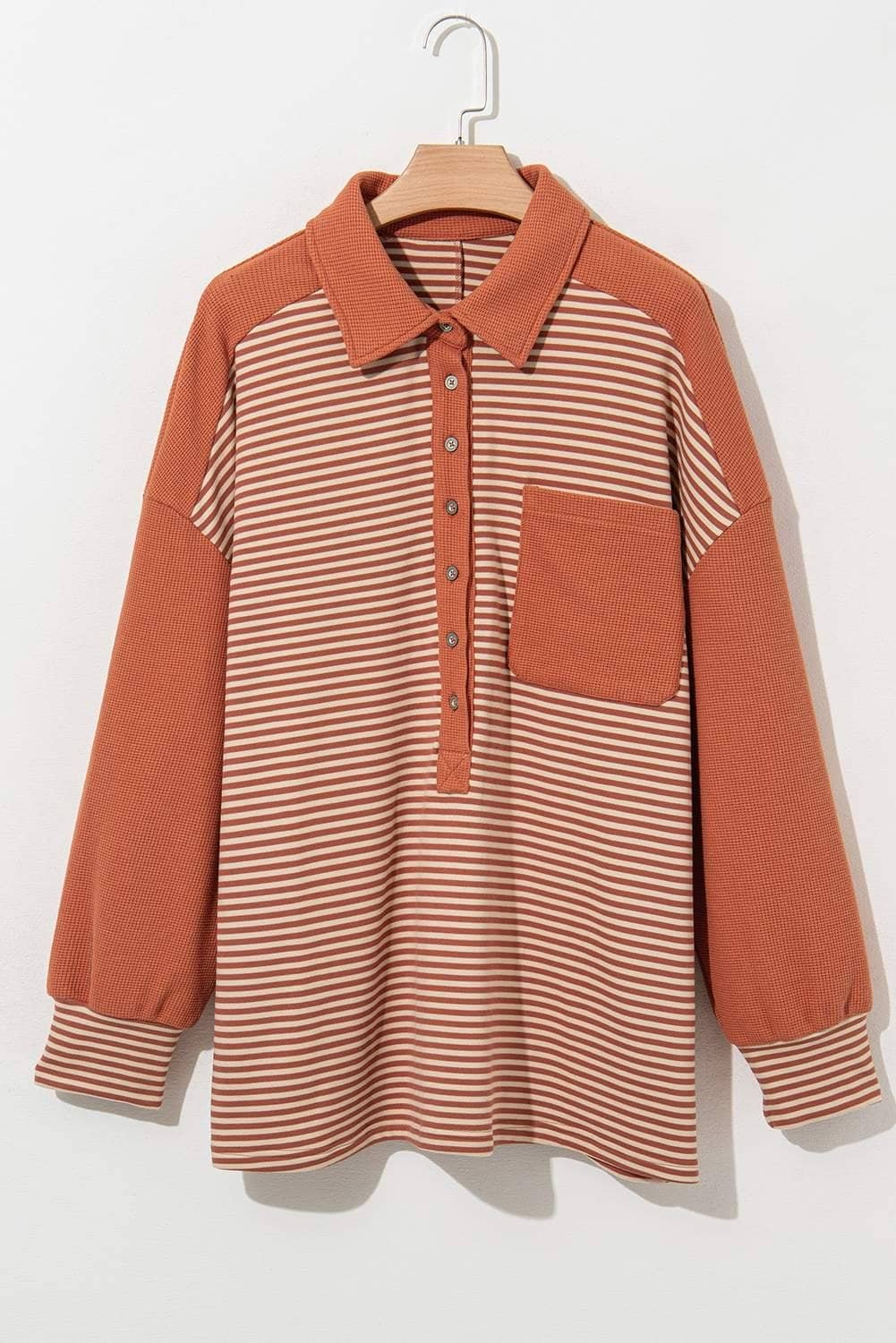 Be the first to review “Red Stripe Textured Patched Drop Shoulder Buttoned Plus Size Sweatshirt”