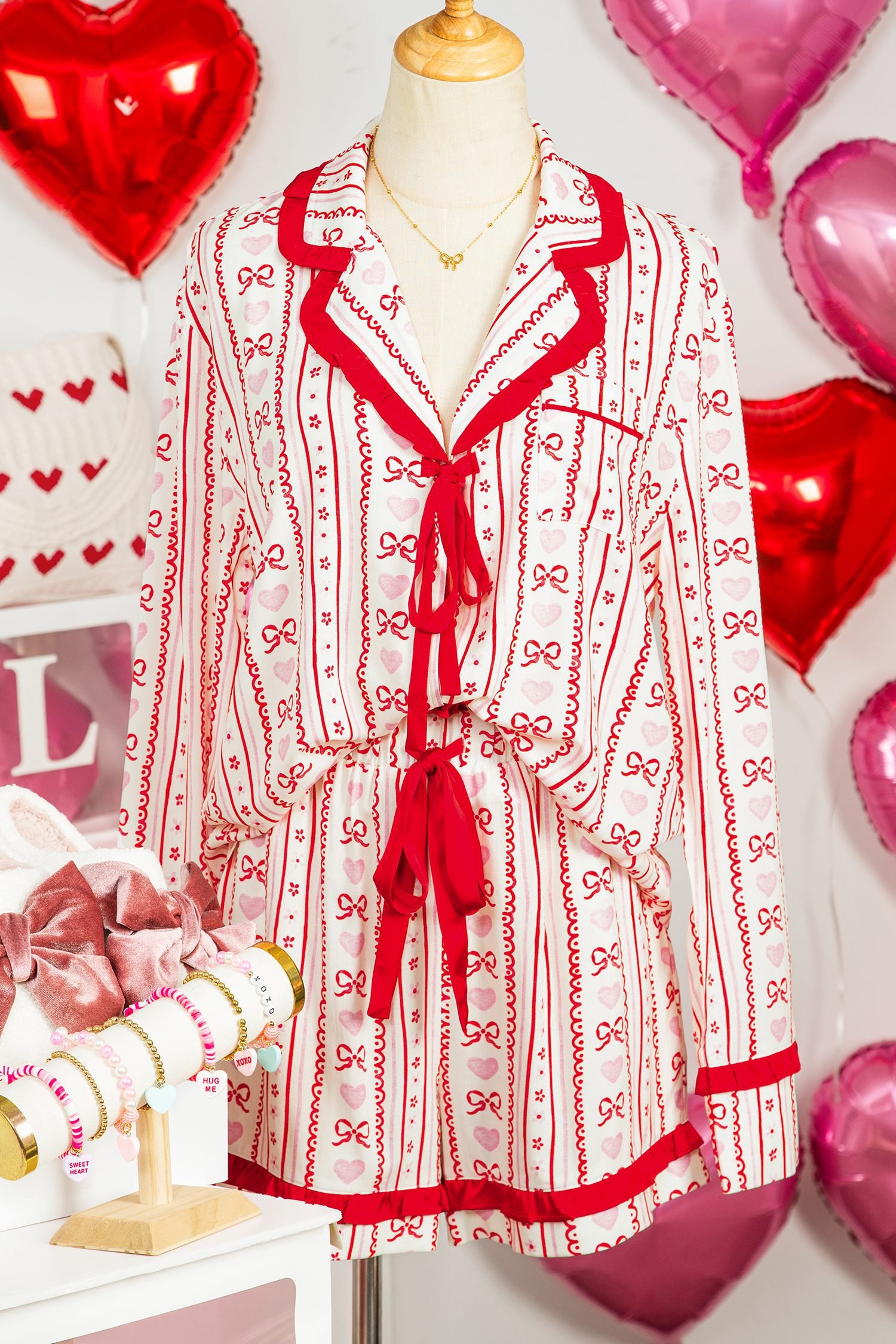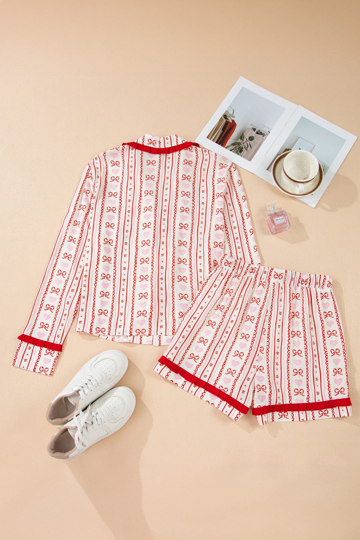 The 2pcs set includes a long sleeve shirt top and matching shorts.