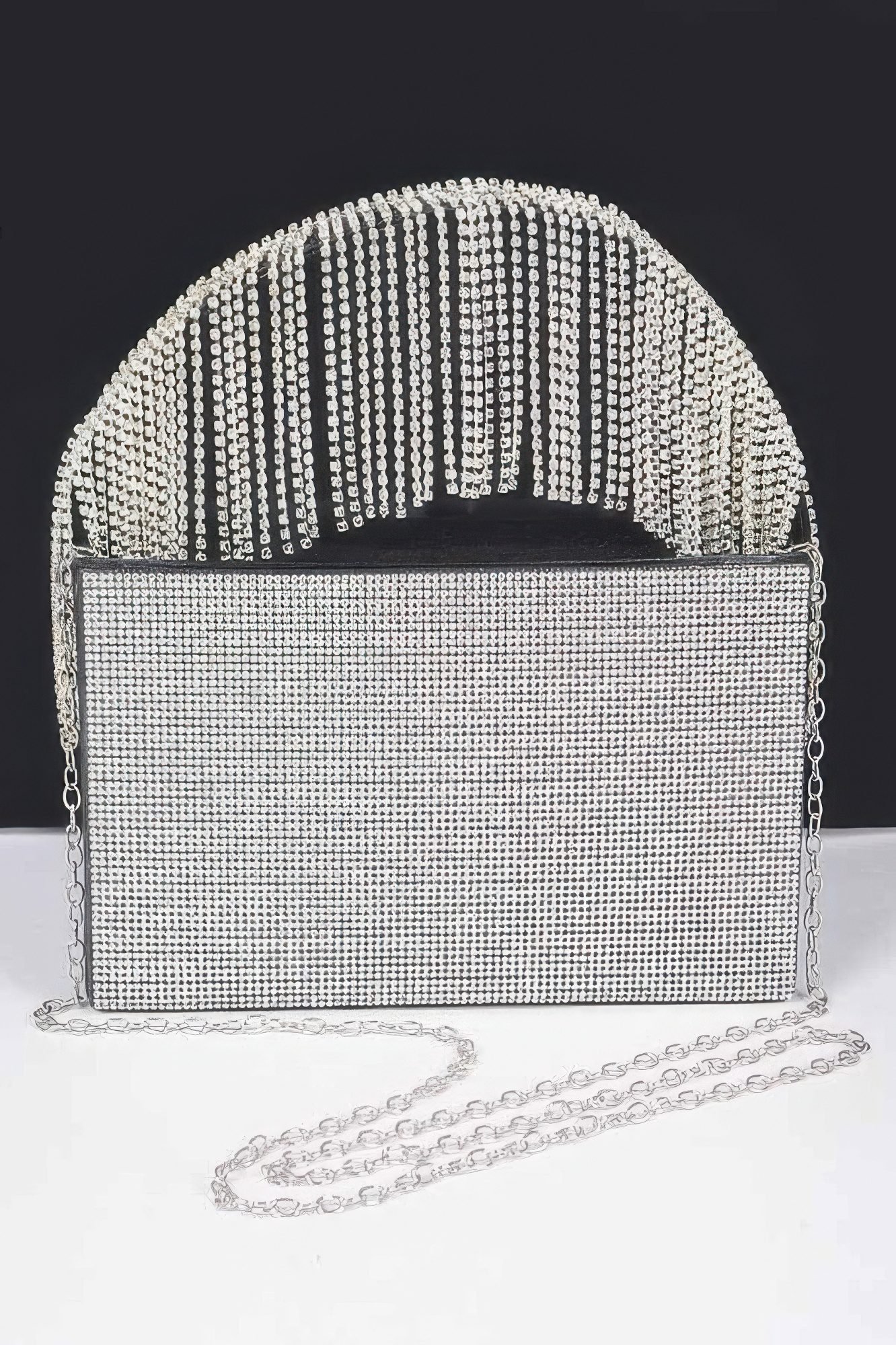 Rhinestone Box Clutch W/rhinestone Fringe Handle