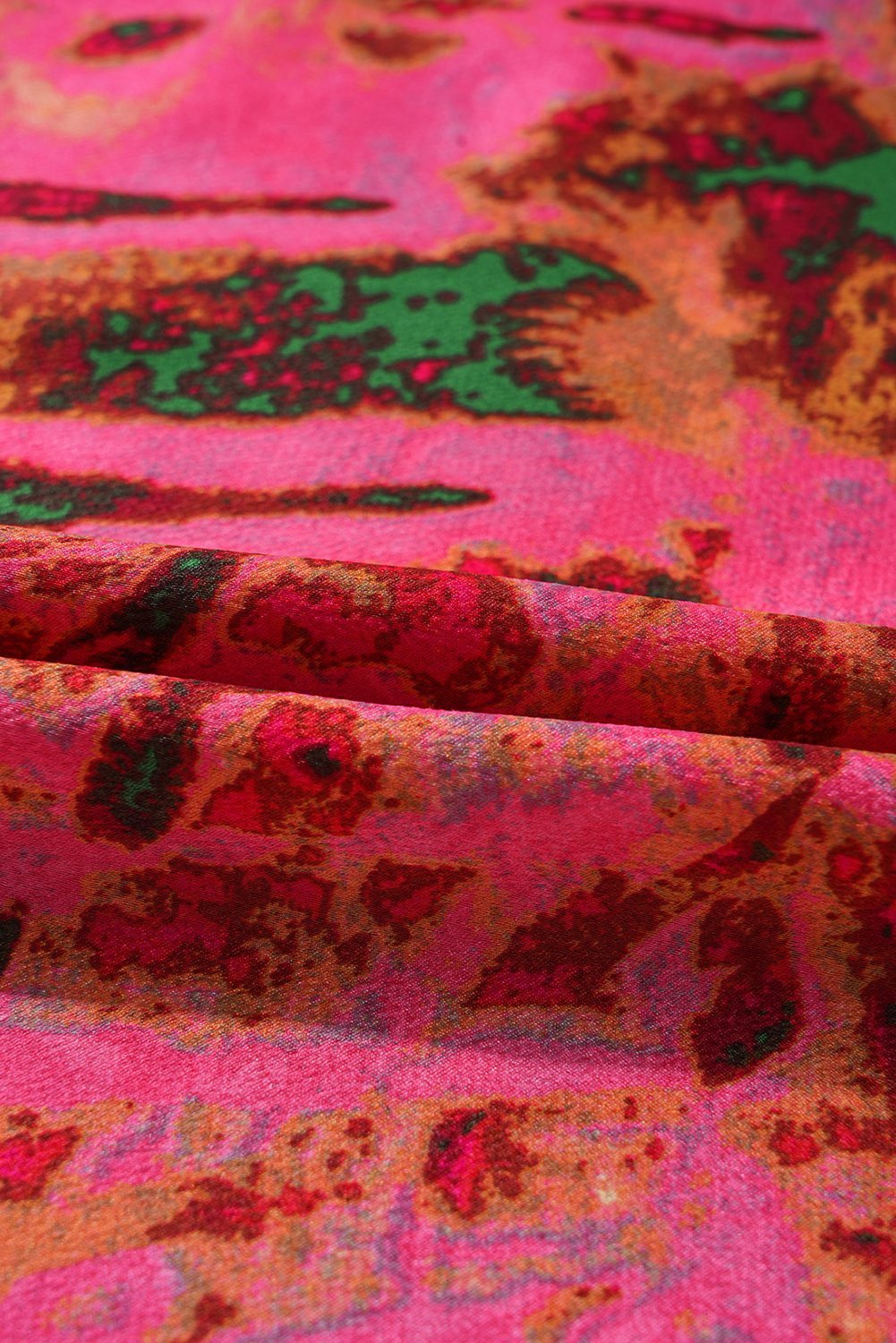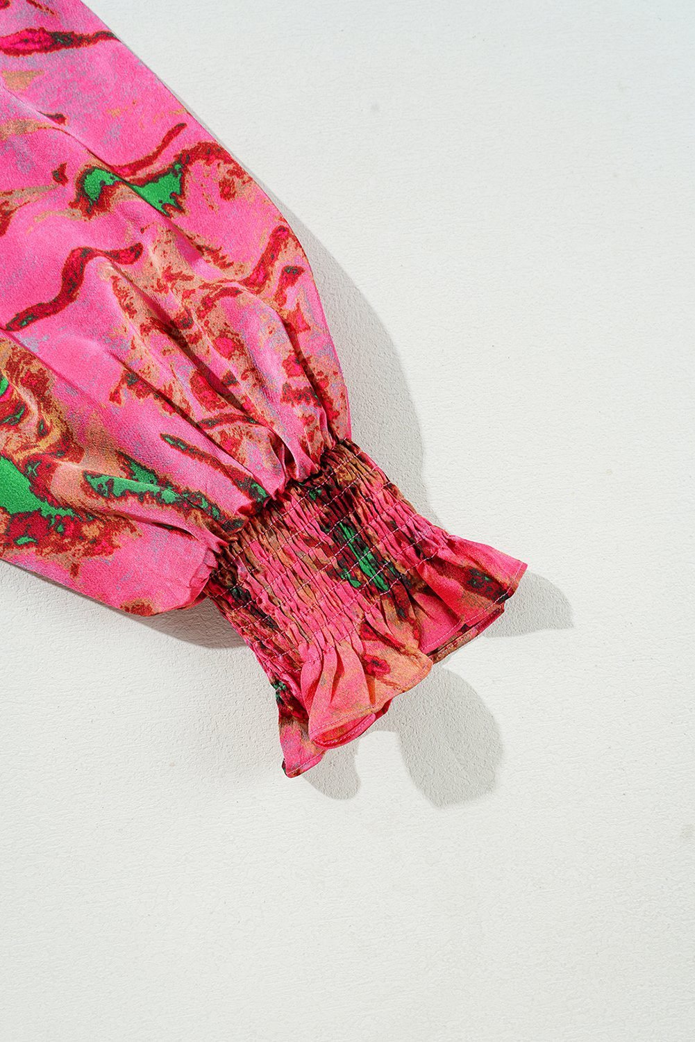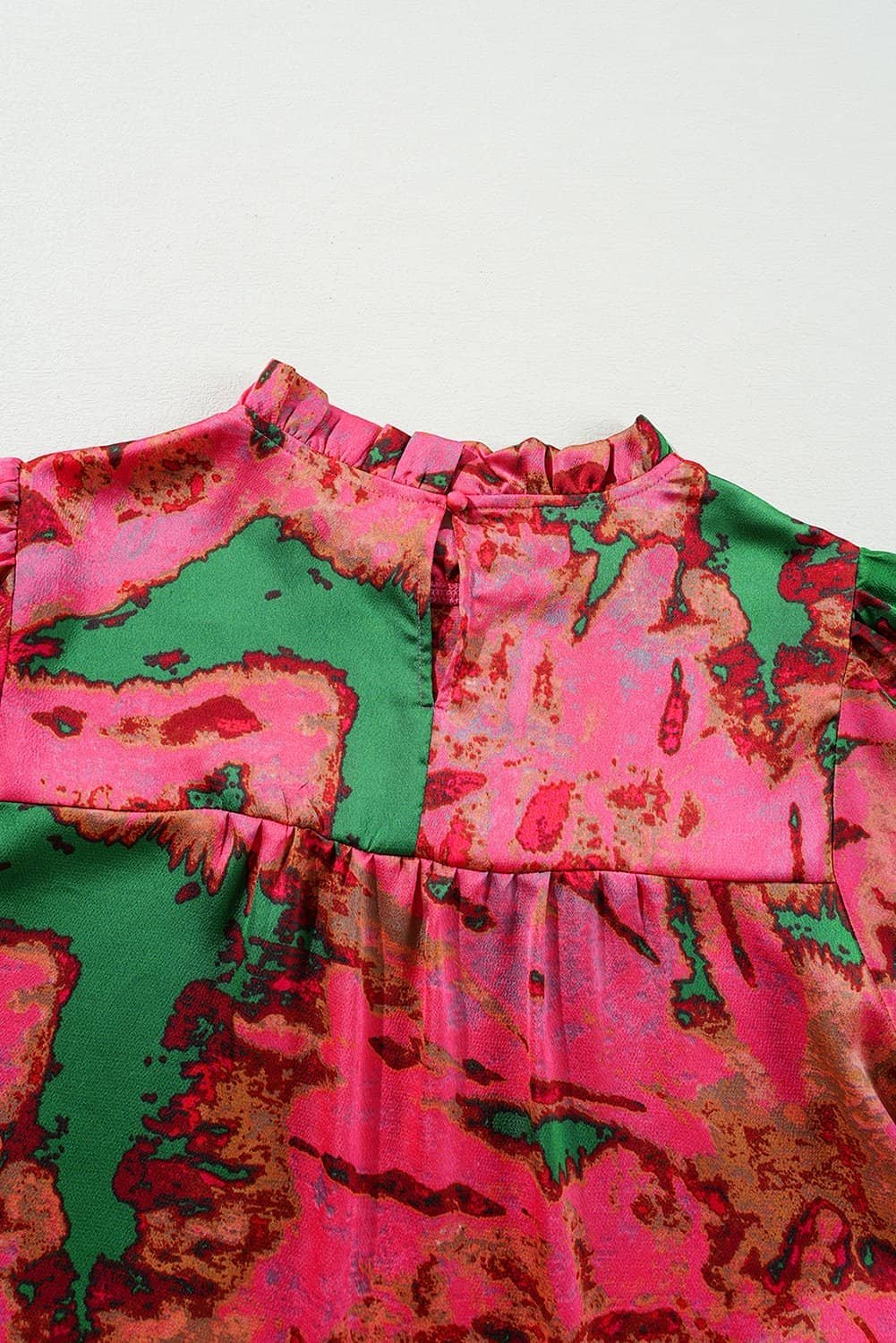 Rose Abstract Print Frilly Neckline Puff Sleeve Blouse