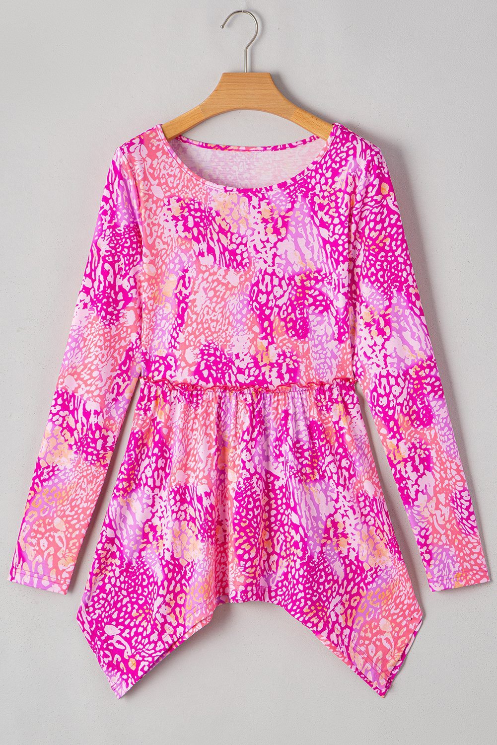 Rose Classic Leopard Print Handkerchief Hem Tunic Top