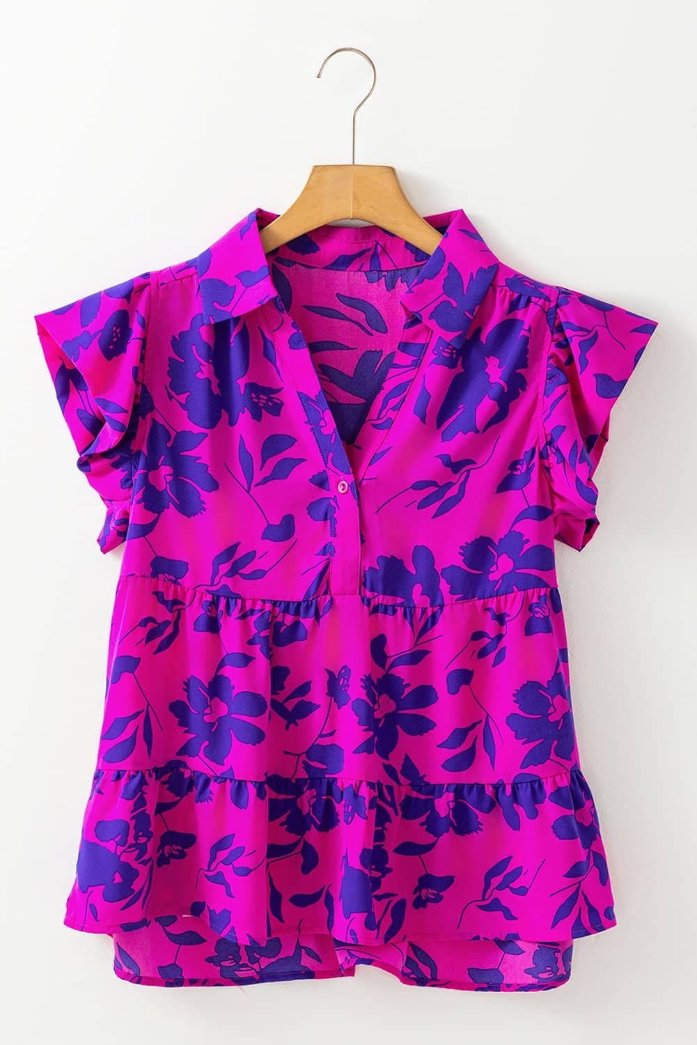 - This floral blouse creates a stylish and eye-catching look that is perfect for the season.