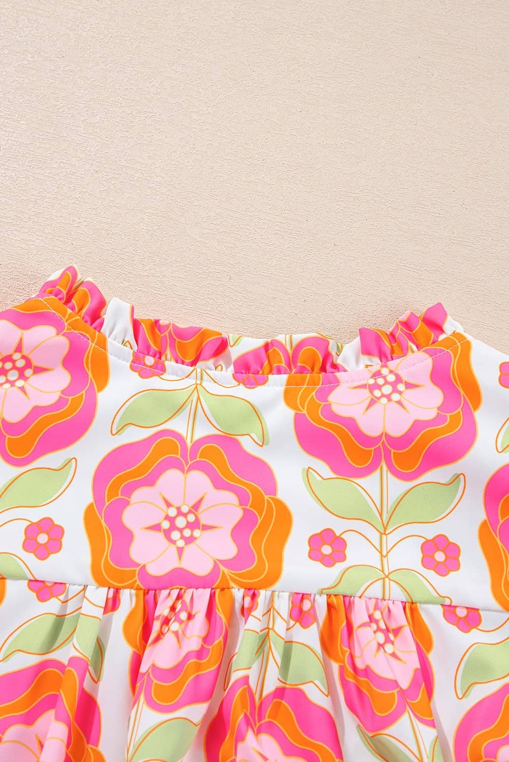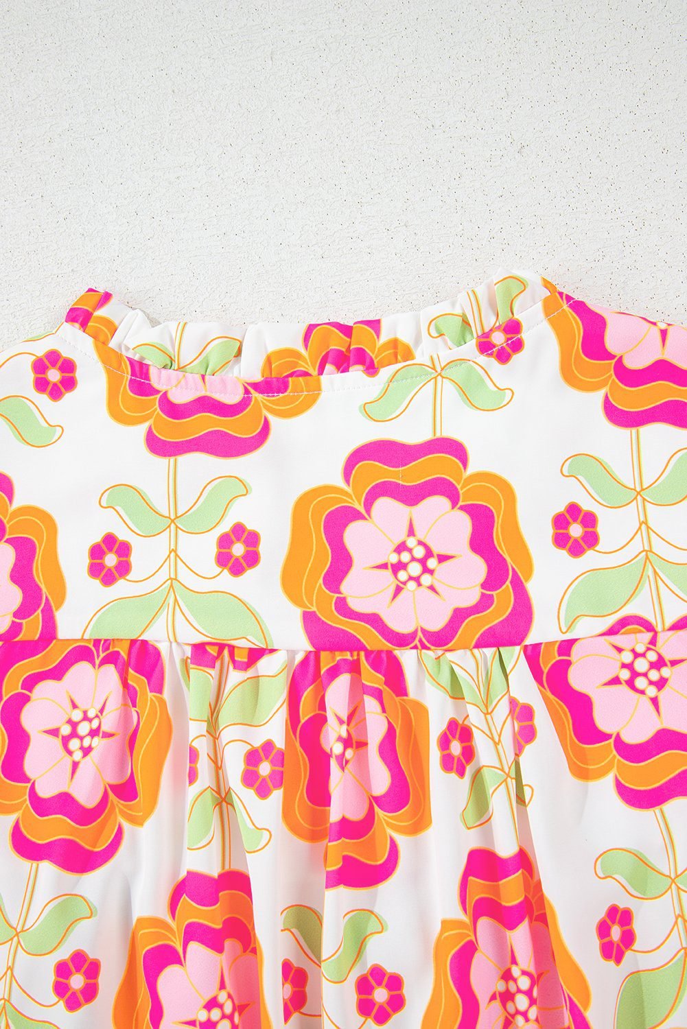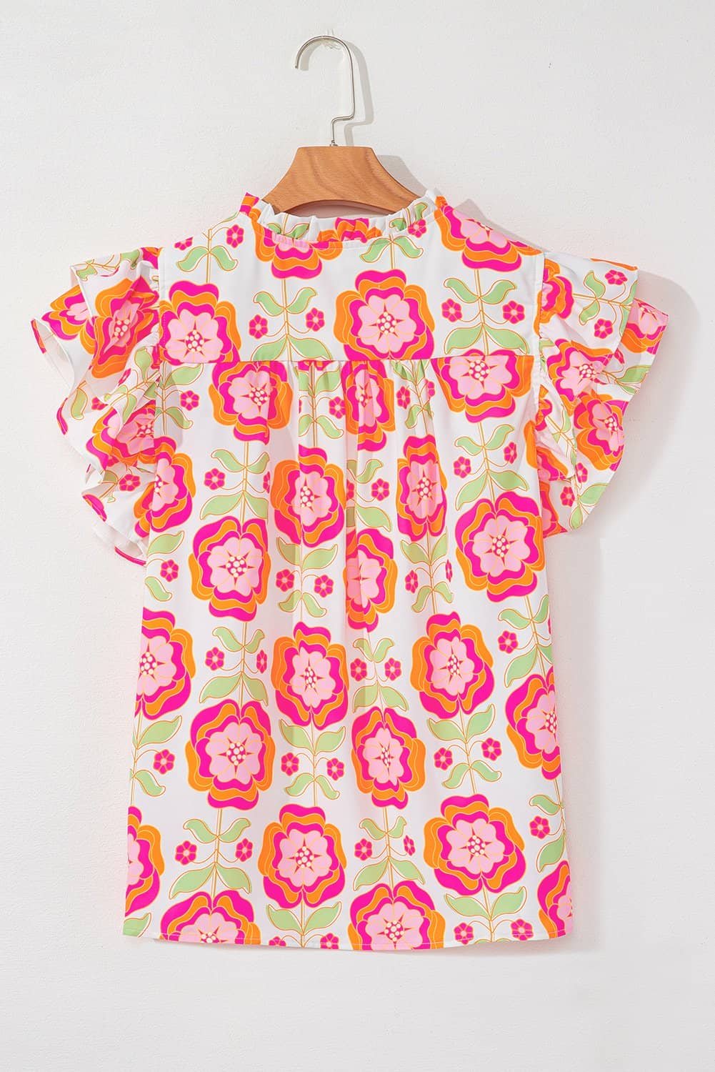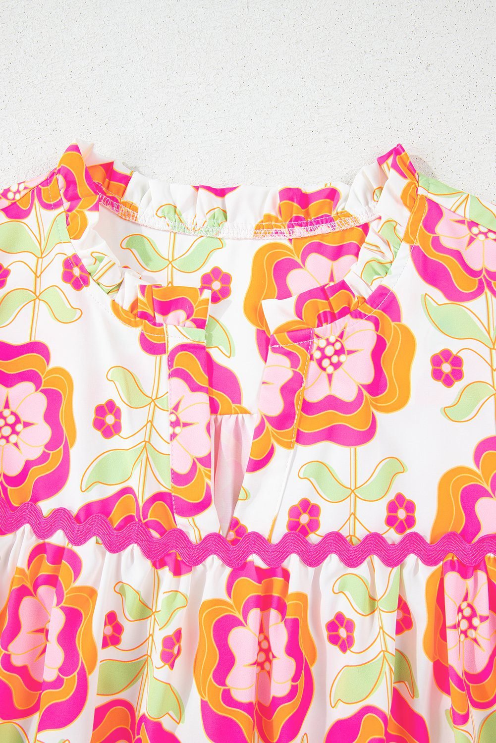Be the first to review “Rose Floral Ruffled Sleeve Ric-Rac Trim Split Neck Loose Blouse”
