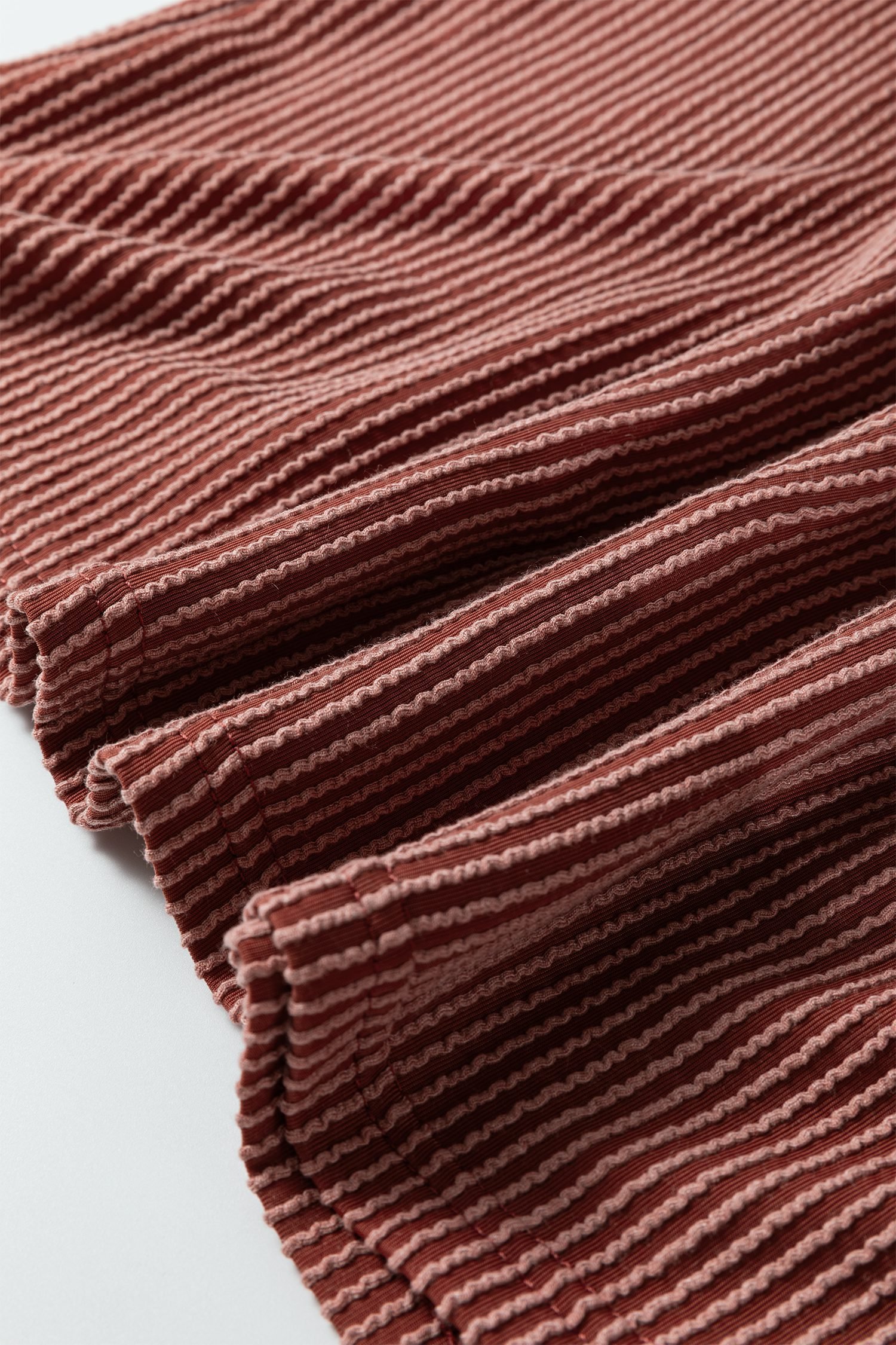 Ribbed textured fabric provides comfortable stretch and a flattering fit.