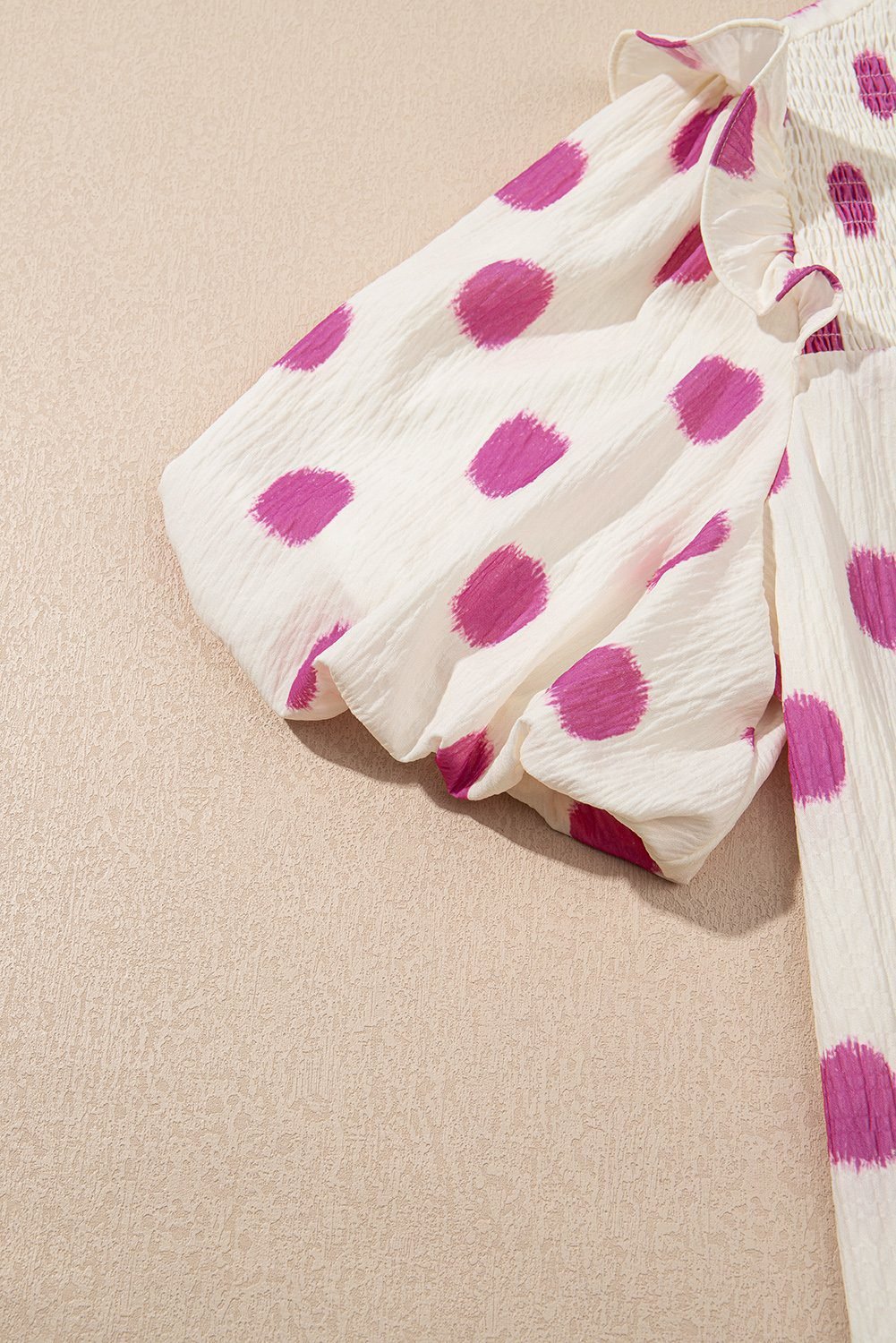 Be the first to review “Rose Polka Dot Print Shirred Yoke Notched Neck Balloon Sleeve Blouse”