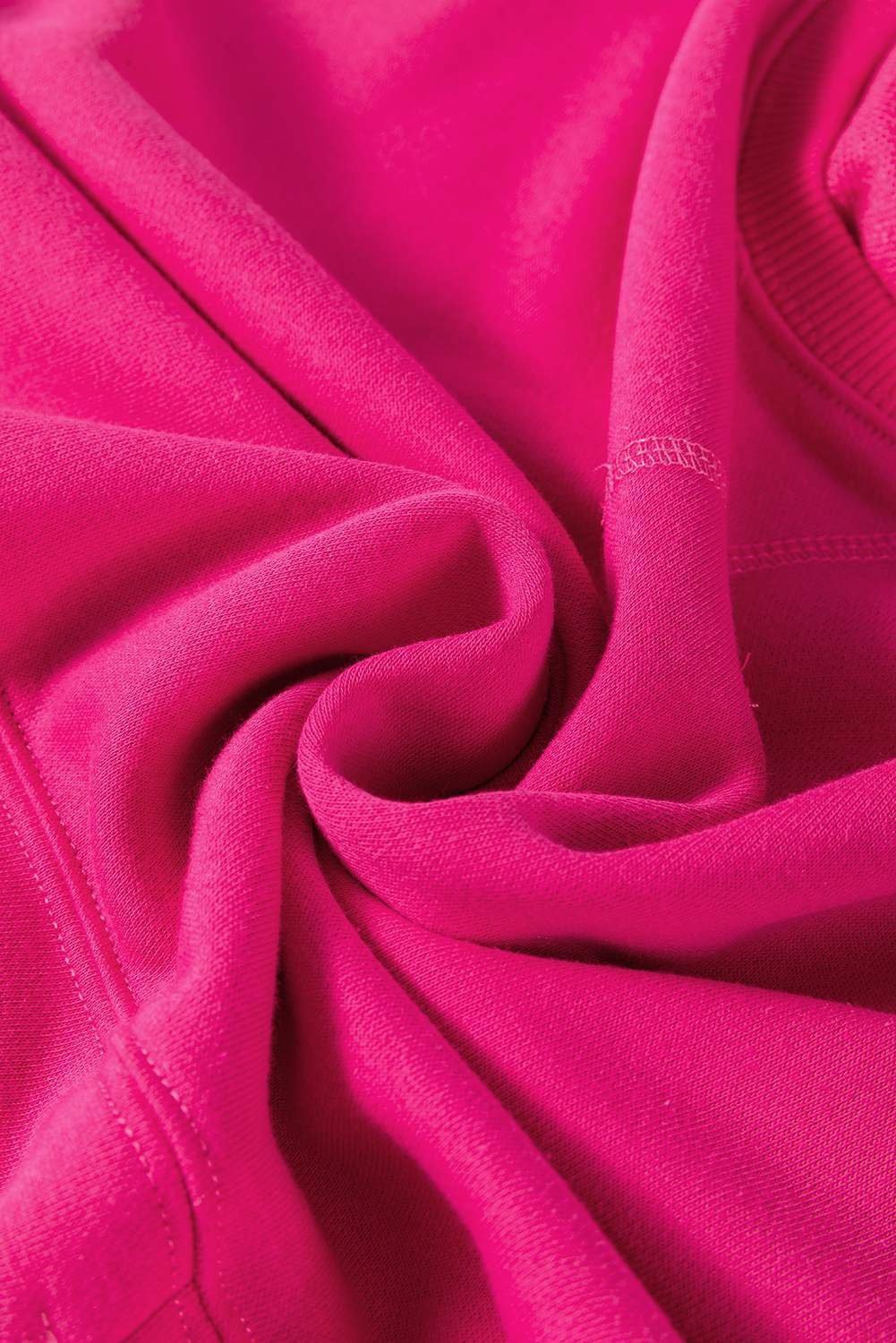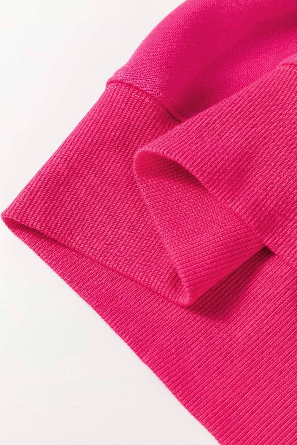 Rose Red Drop Shoulder Crisscross Stitching Pocketed Loose Sweatshirt
