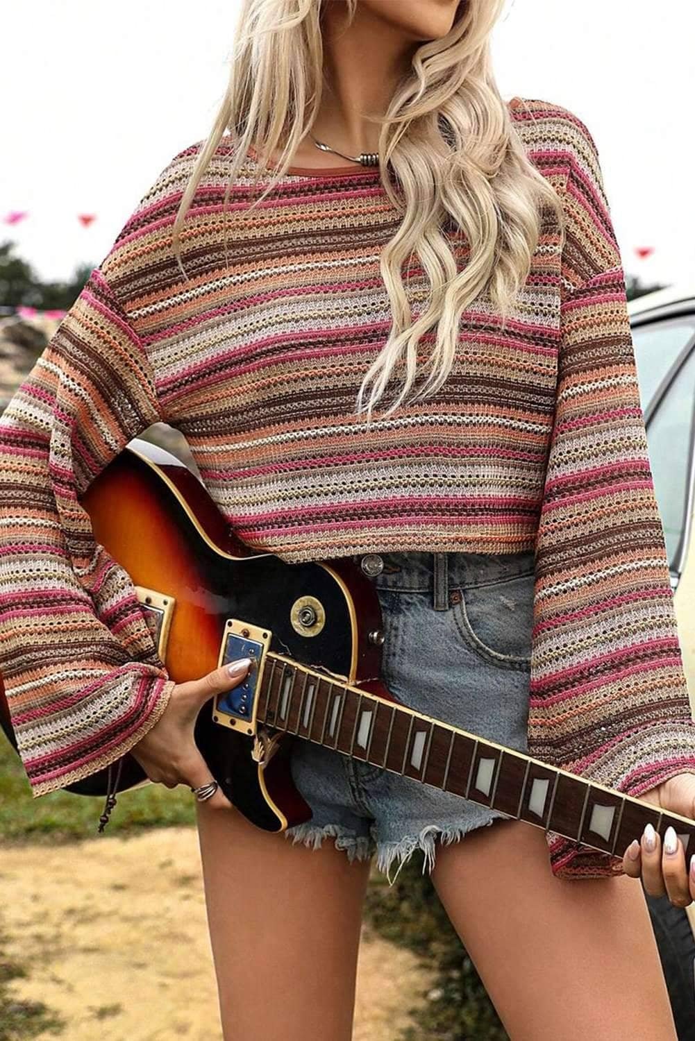 - This fashion top features vibrant ethnic stripes for a bold cultural statement.