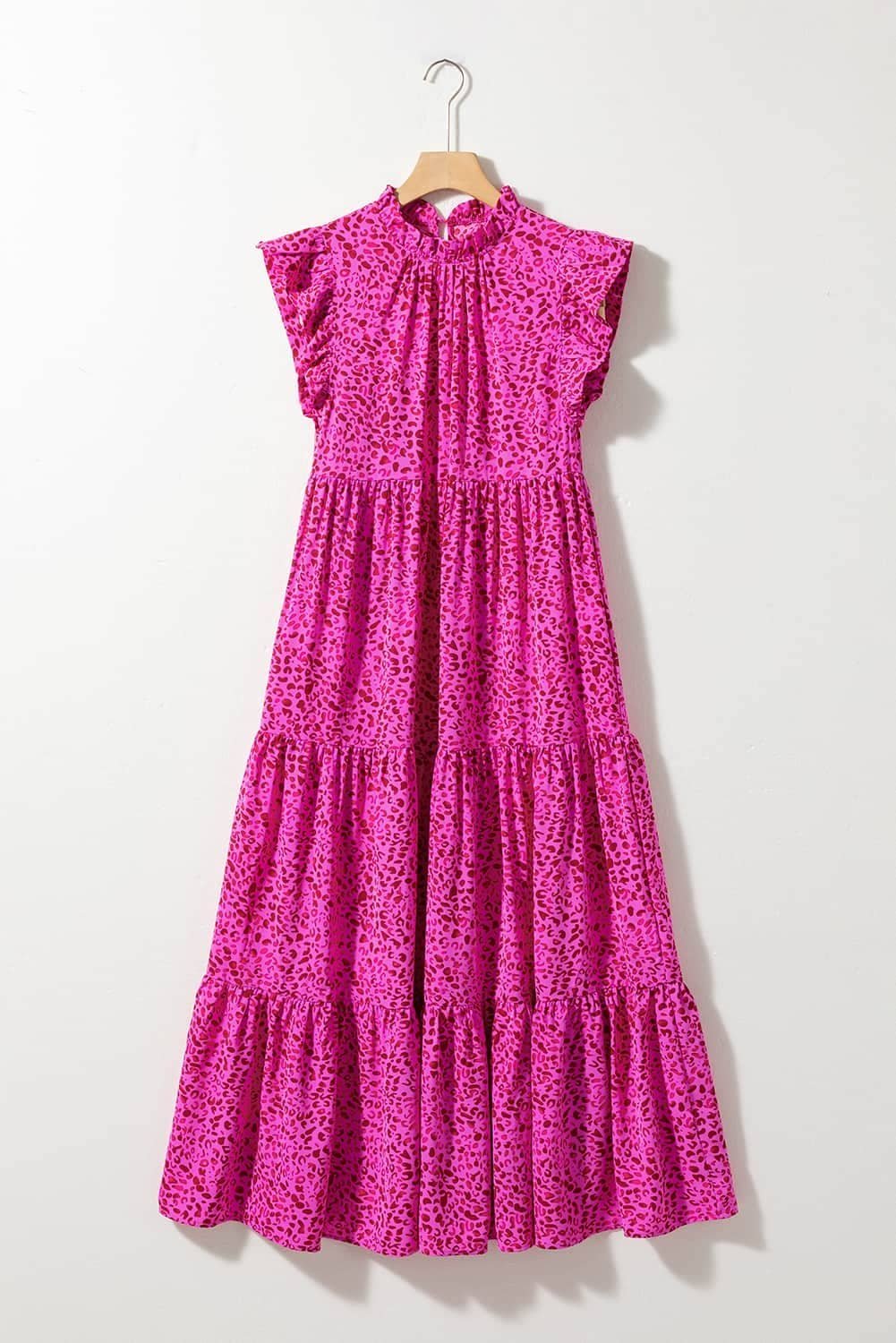 Be the first to review “Rose Red Leopard Print Ruffled Trim Tiered Maxi Dress”