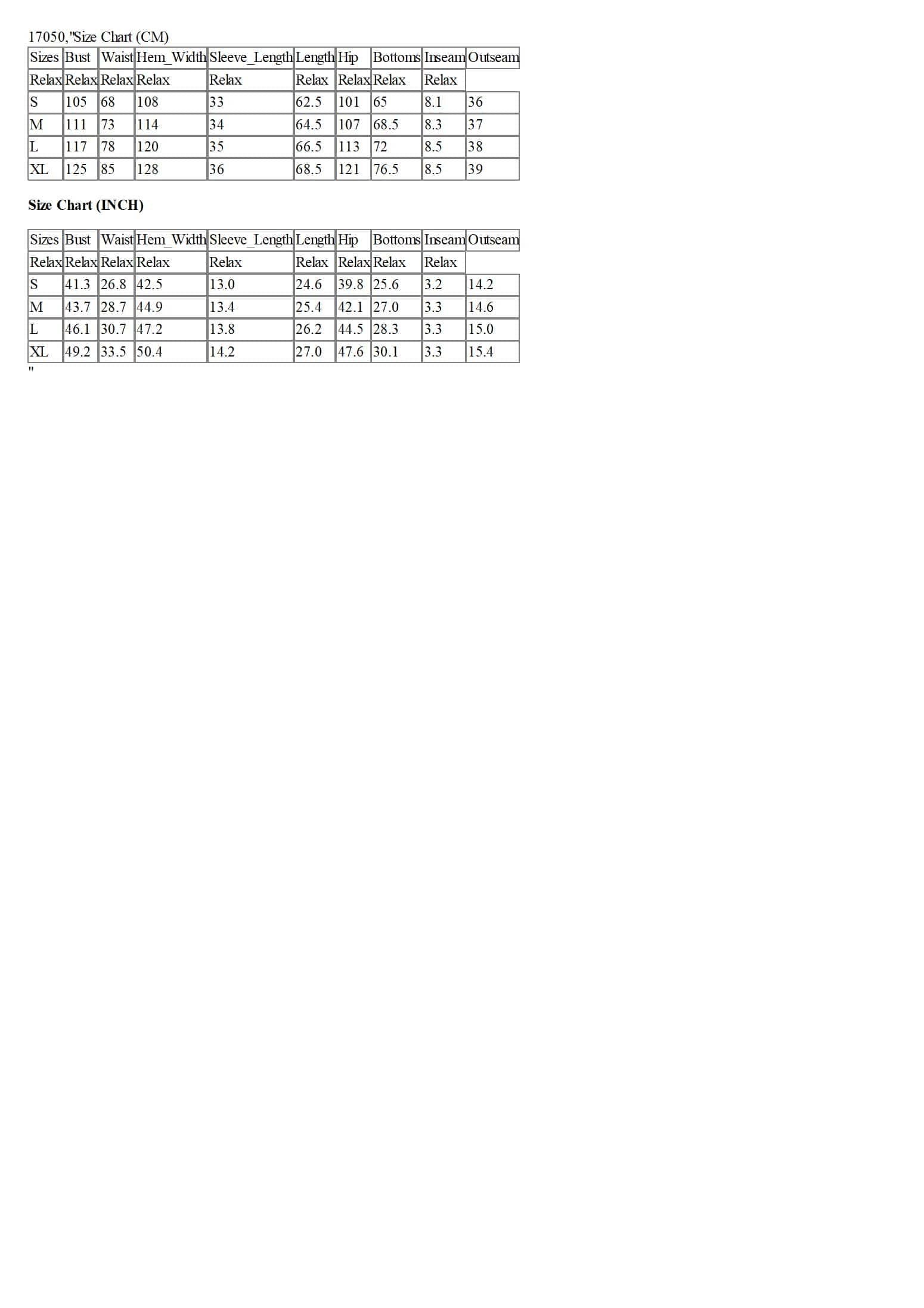 Size Chart (INCH)