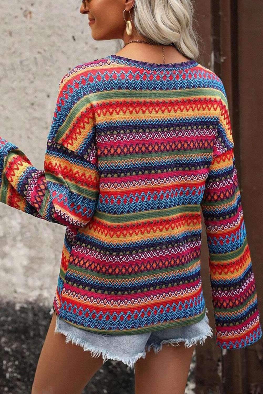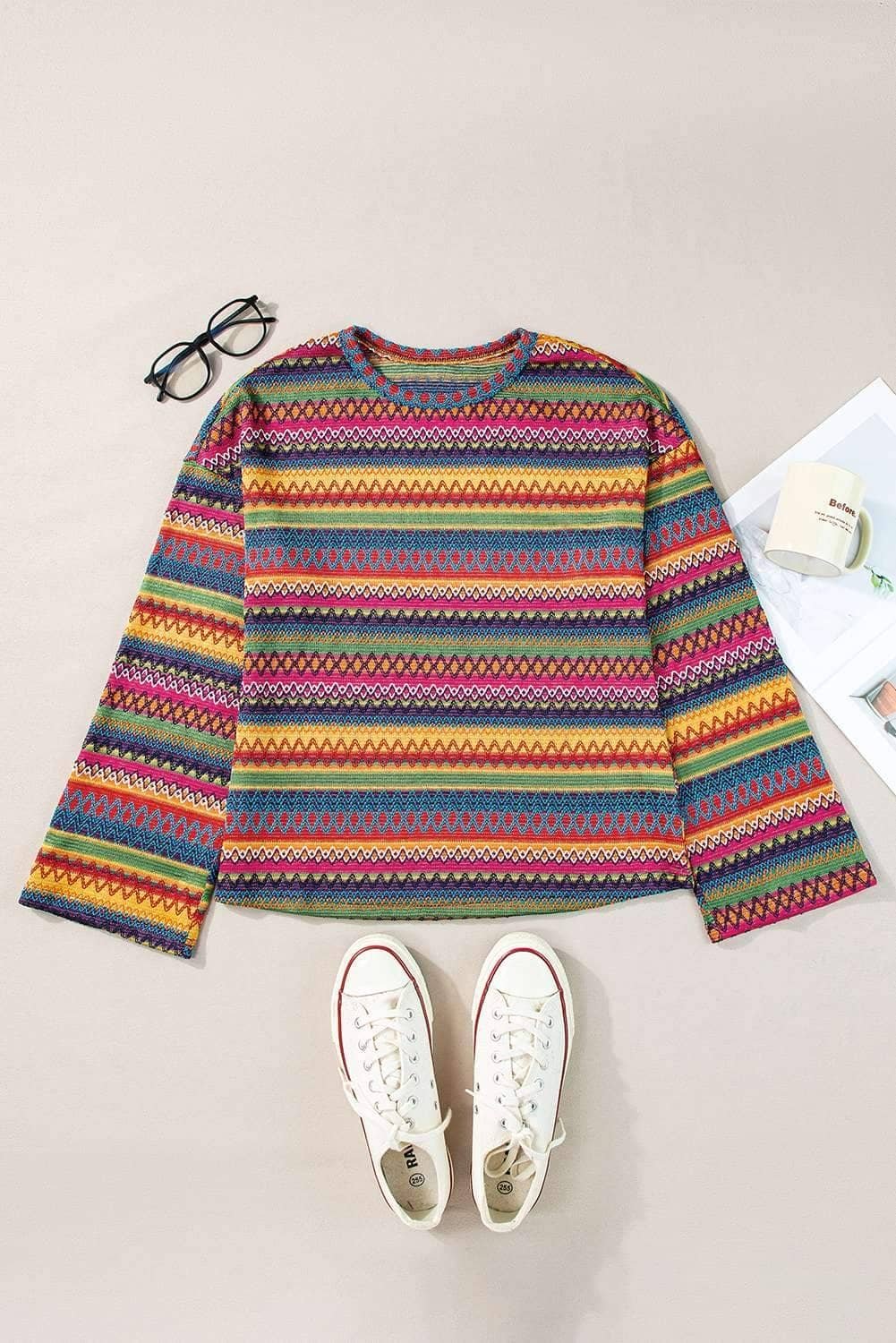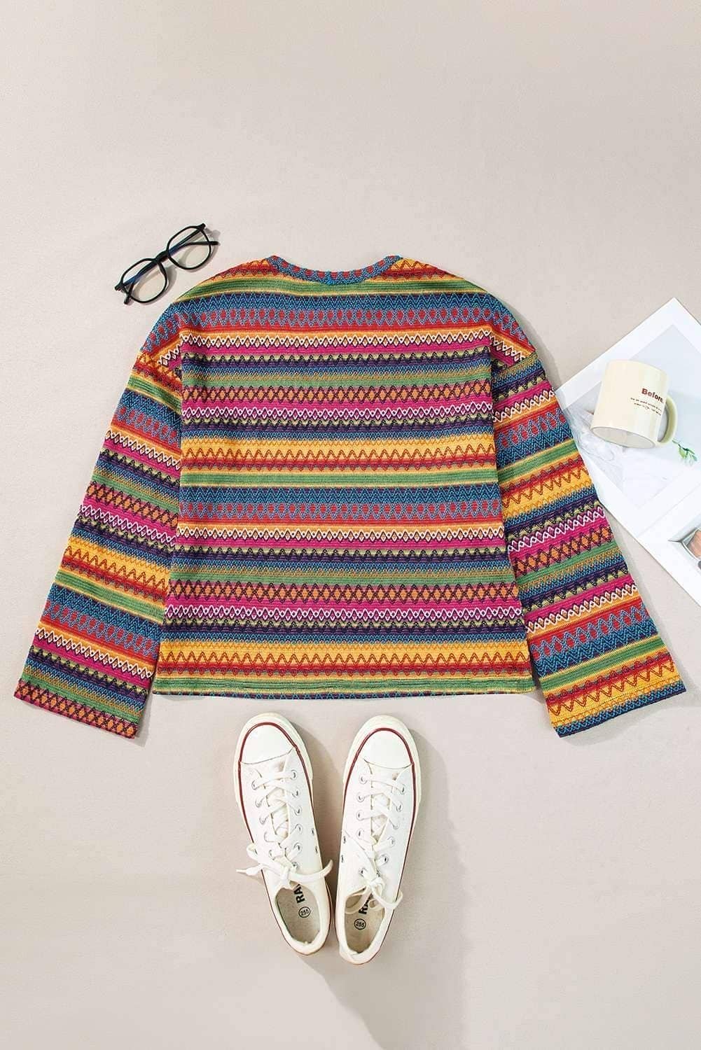 - This long sleeve tee is one of a kind with intricate Jacquard geo silhouette