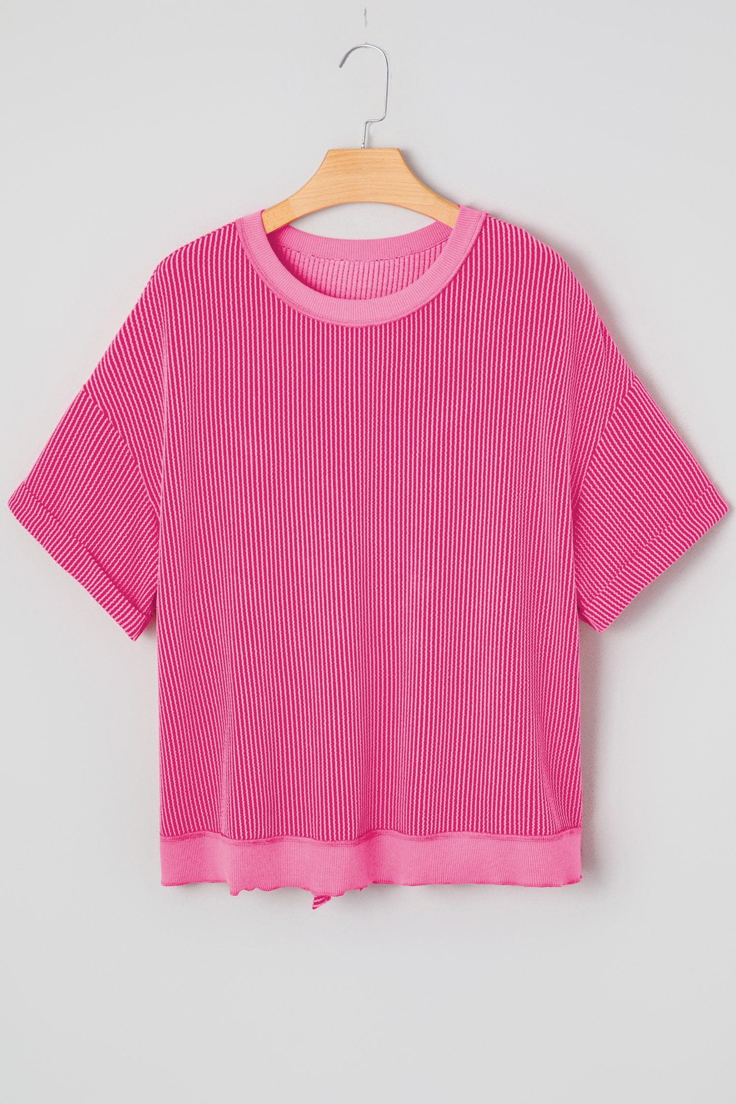 Soft spiral ribbed fabric is soft, elastic and comfy.