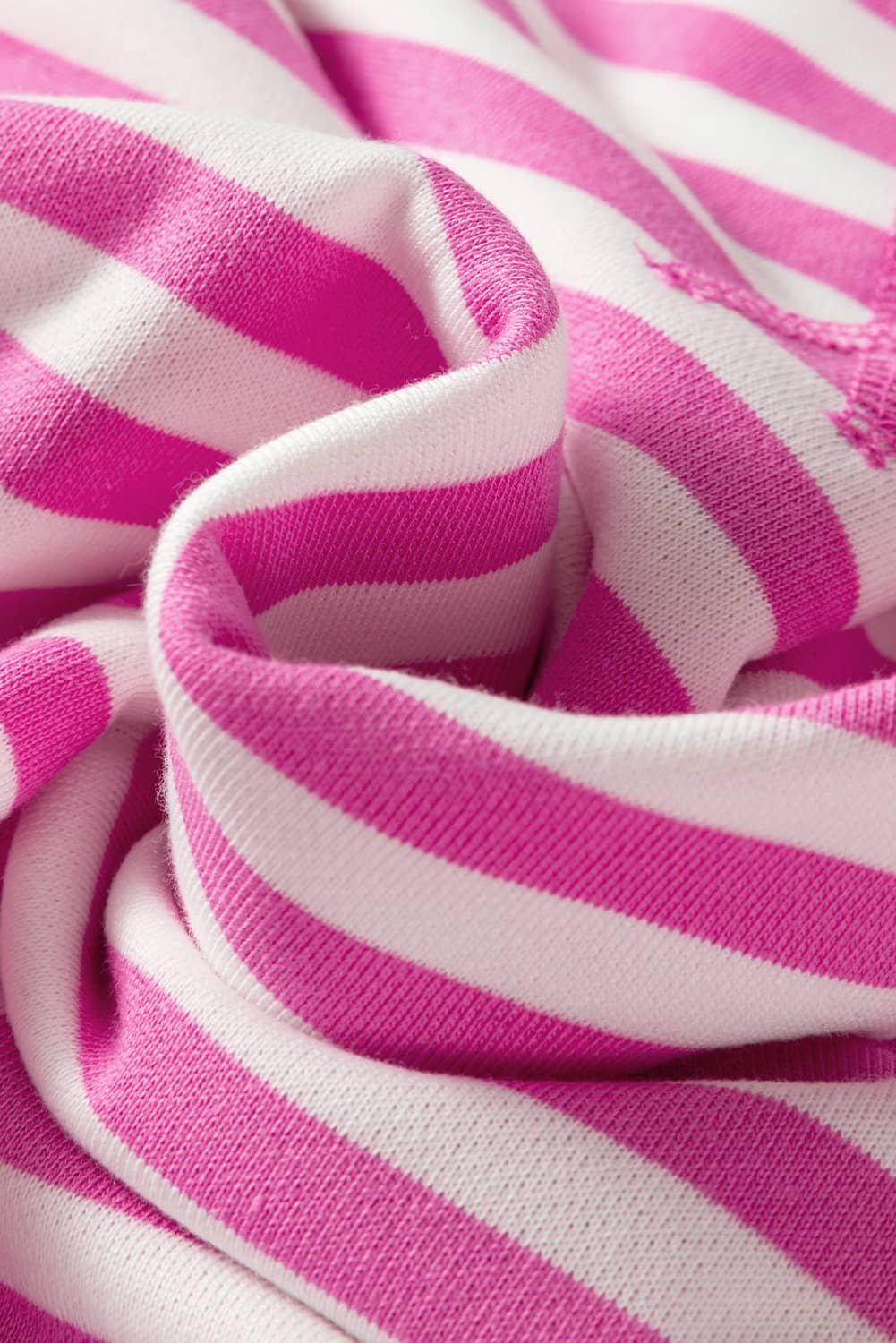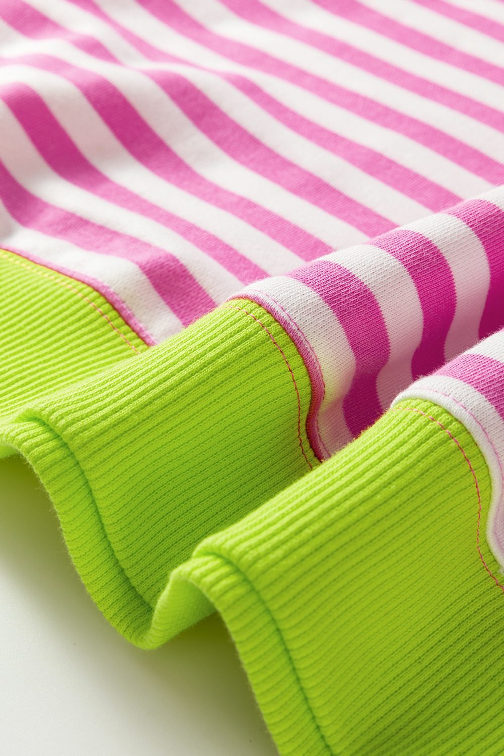 Rose Red Striped Contrast Ribbed Trim Crossed Stitch Drop Shoulder Sweatshirt