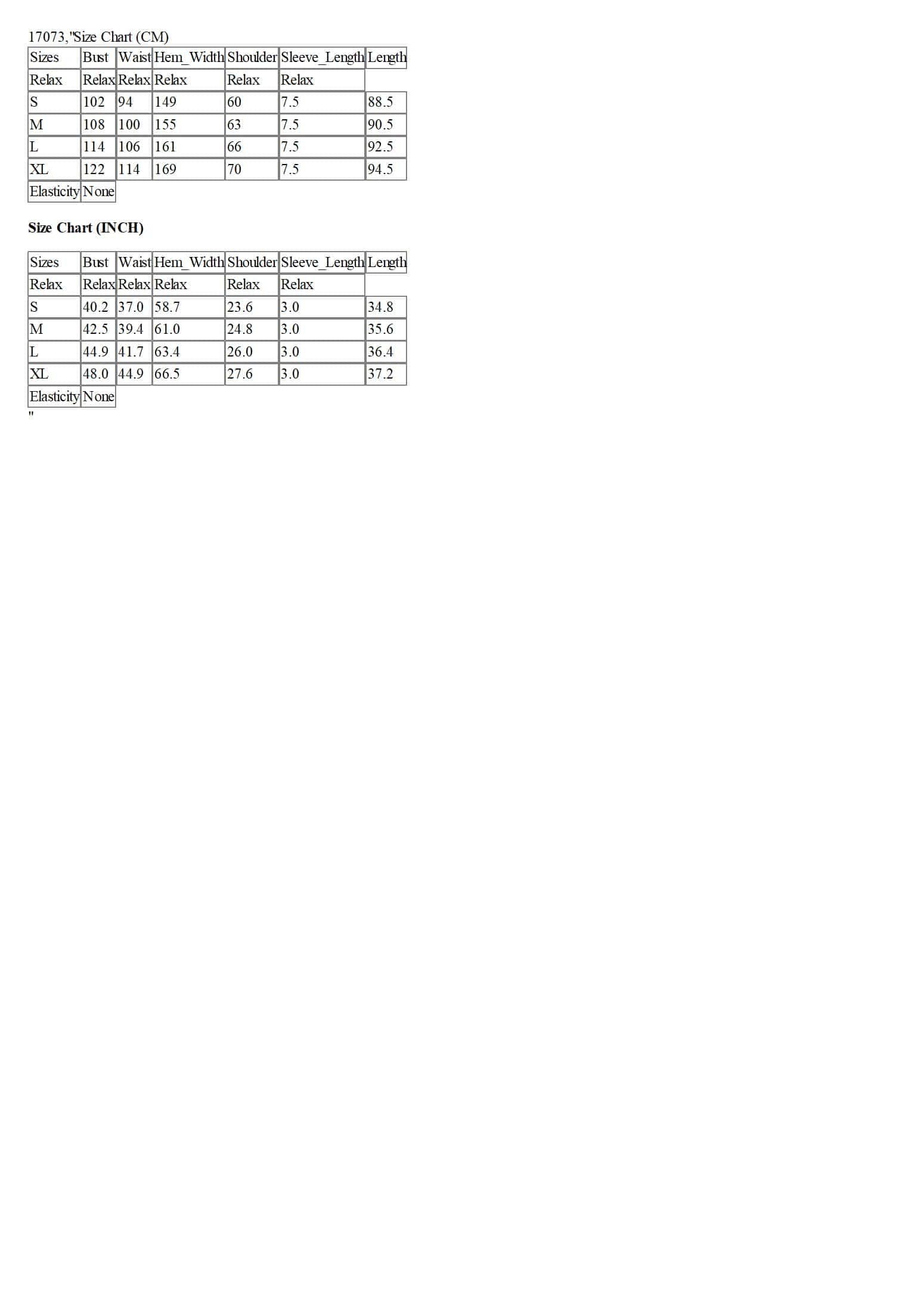 Size Chart (CM)