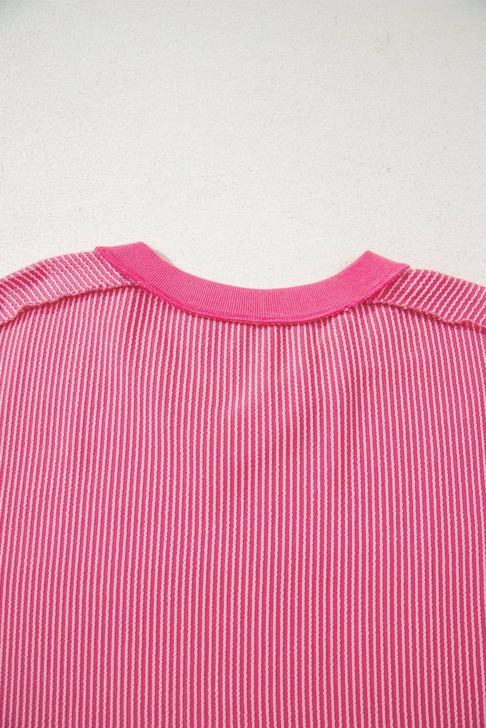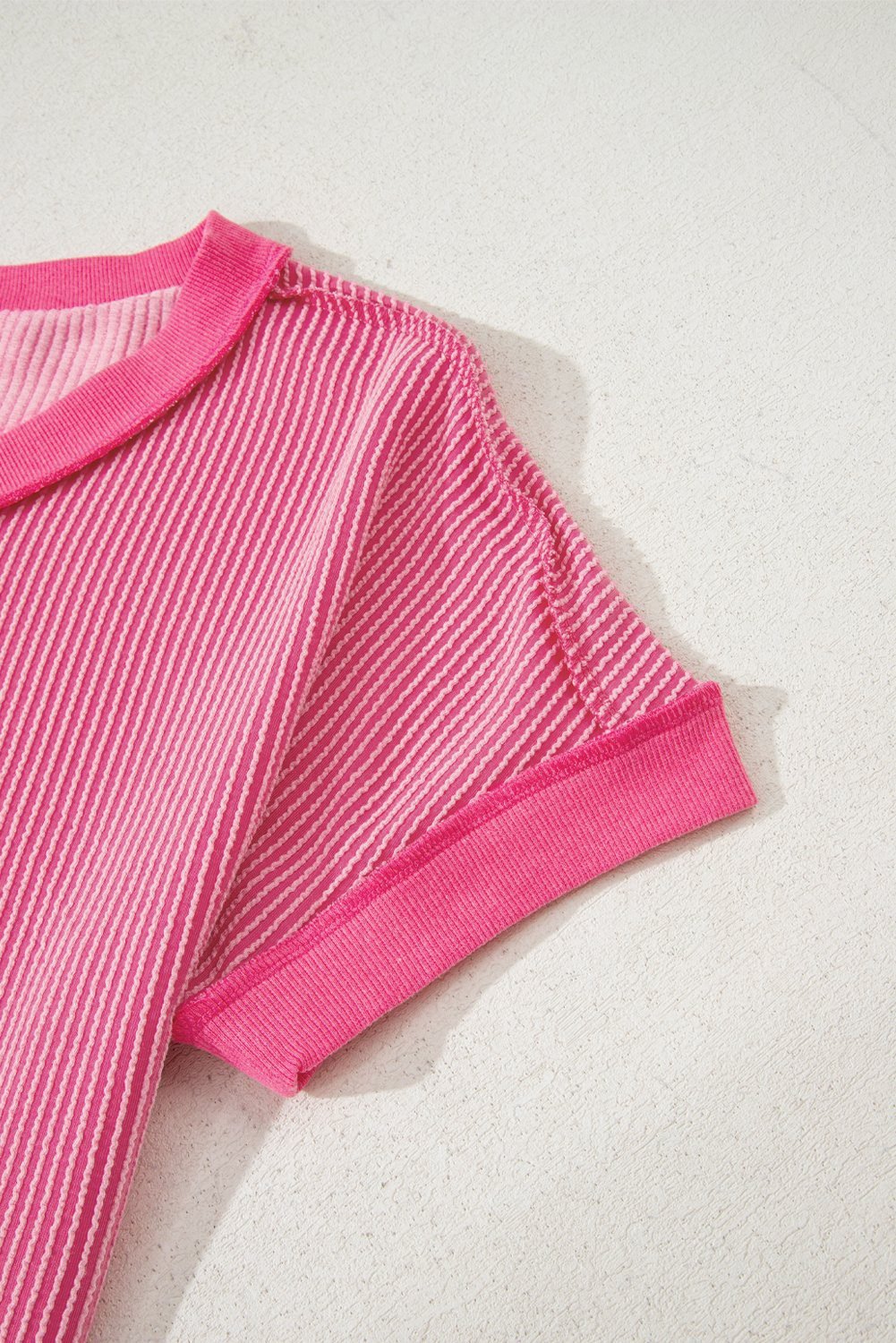 The ribbed neckline and cuffs make this t shirt more structured.