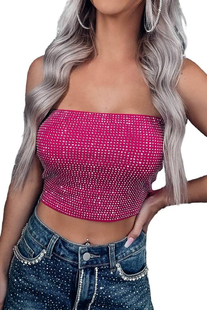 Be the first to review “Rose Rhinestone Tube Crop Top”