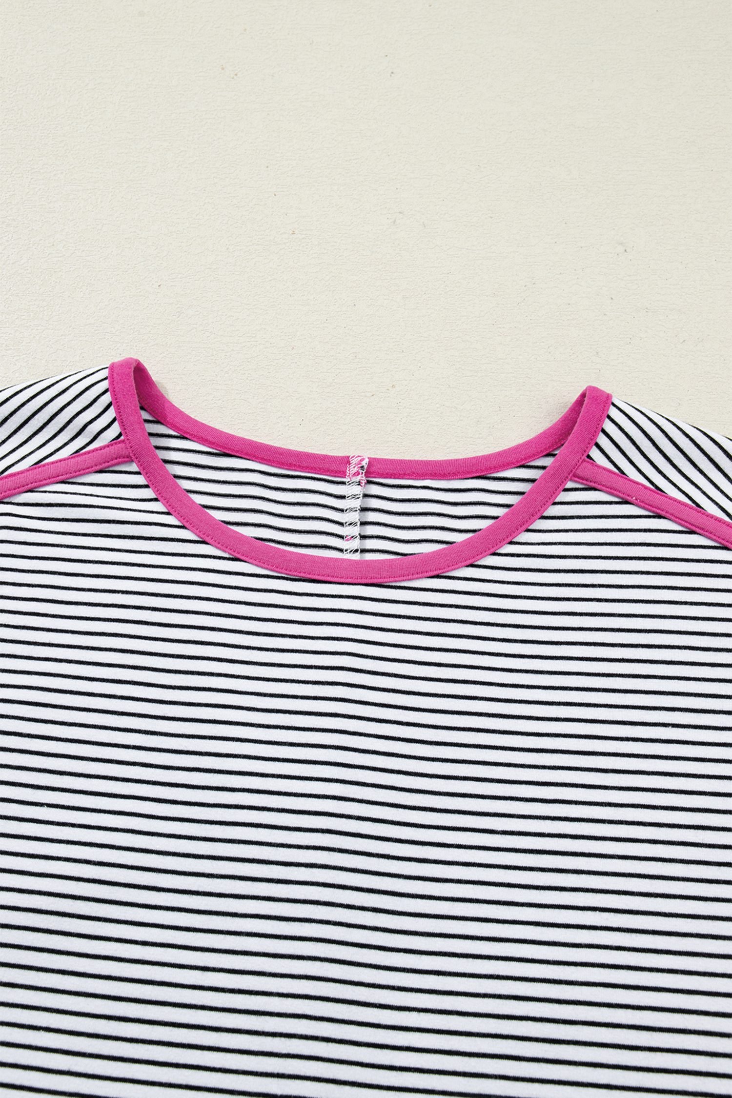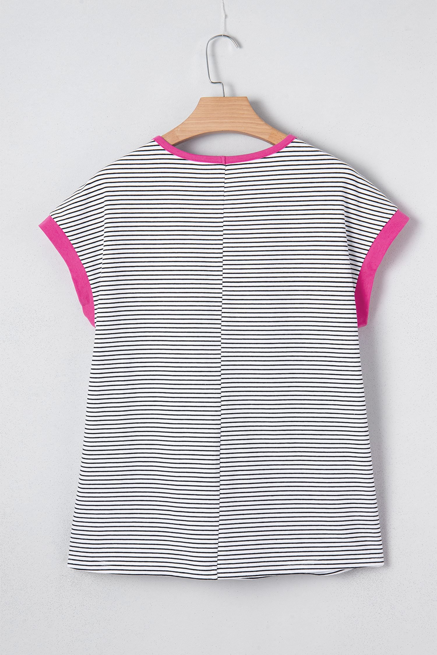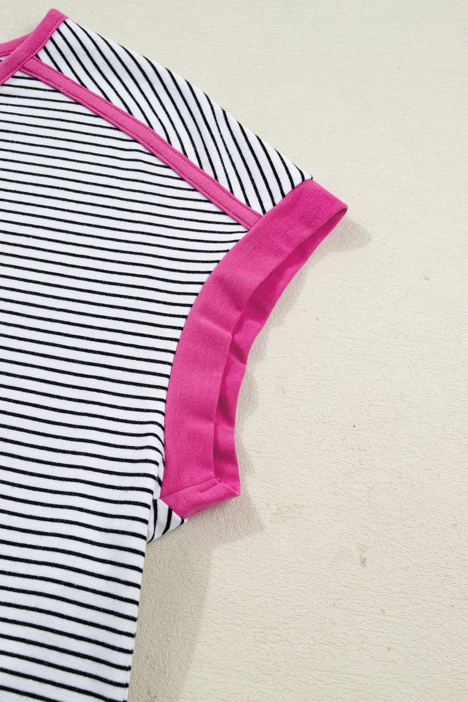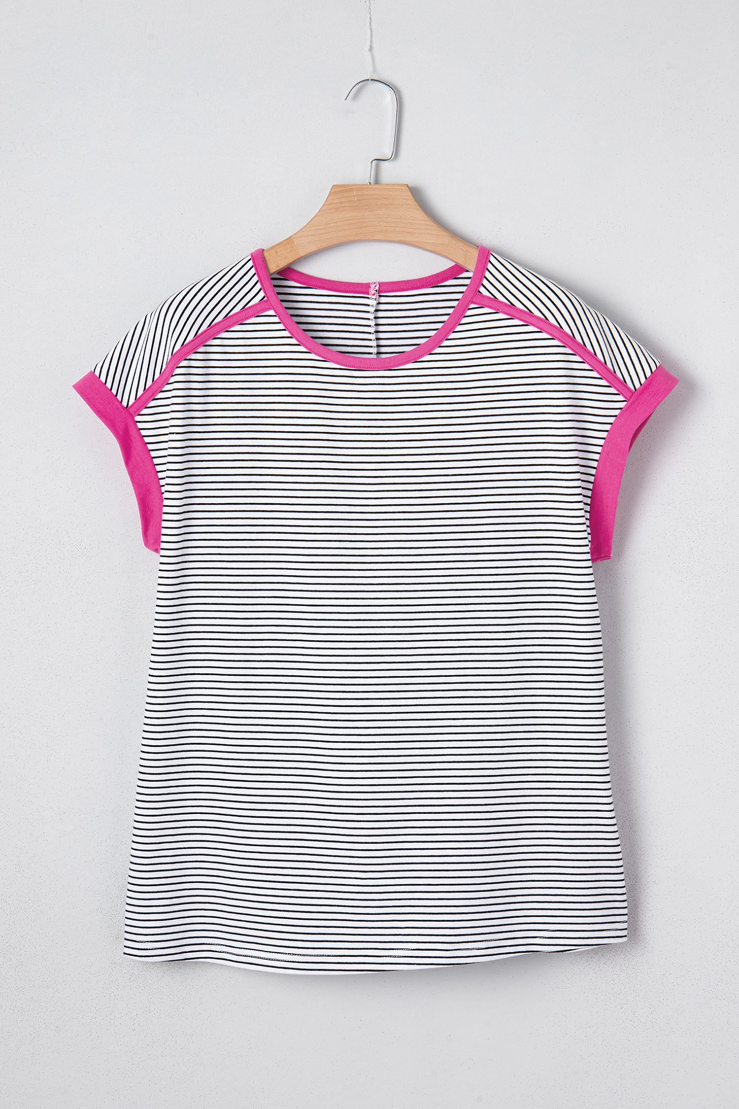 Rose Stripe Contrast Trim Round Neck Summer T Shirt