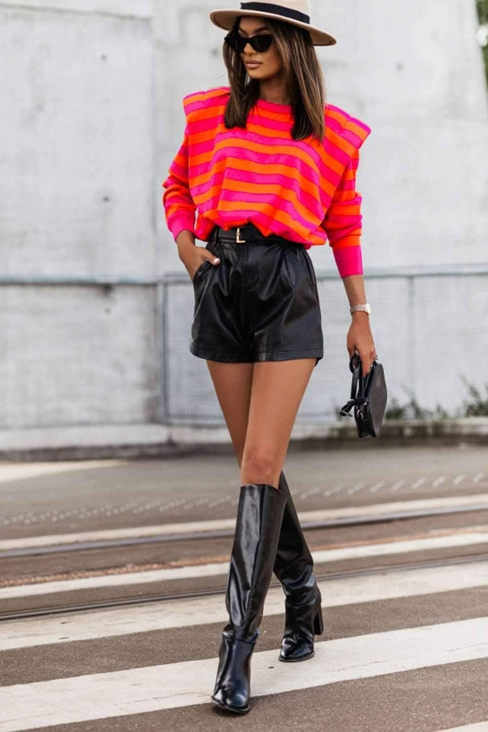 Structured shoulder pads design makes this sweater top unique and elegant.