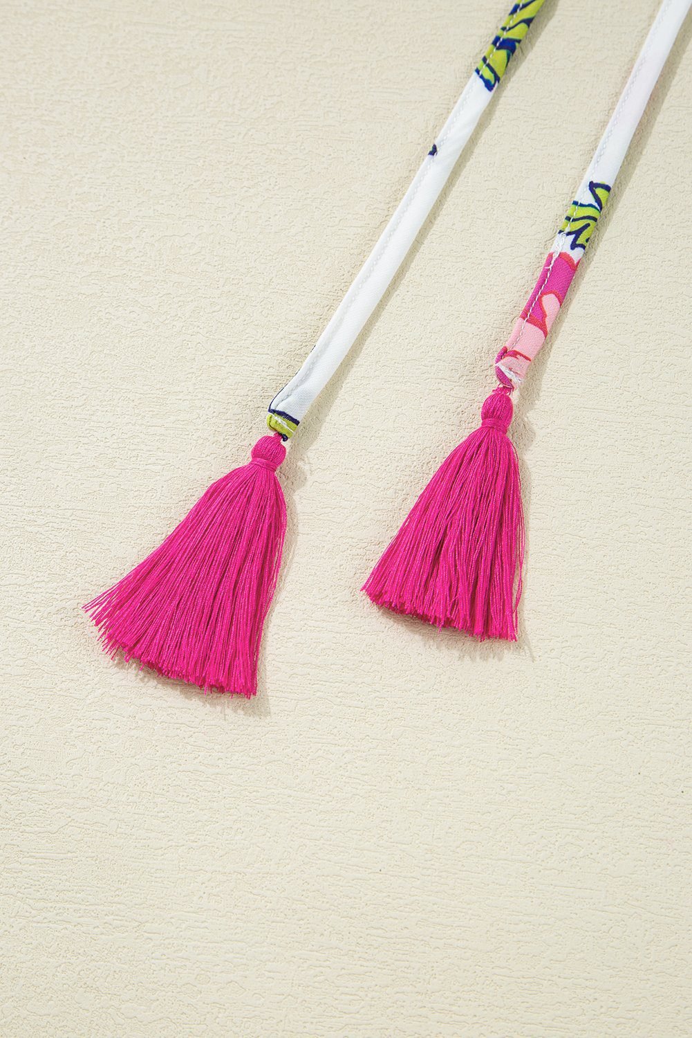 Contrast notched v neck with tasseled lace up.