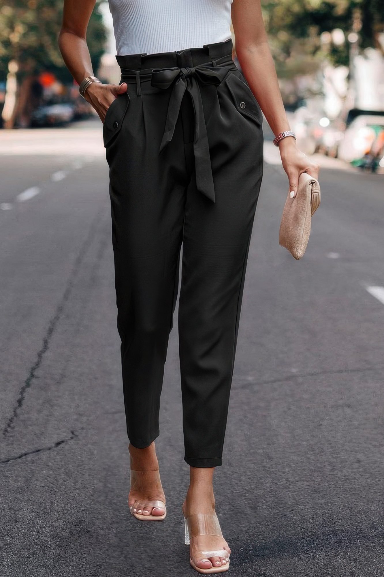 Product Description: These Ruffle Belt Pocket Solid Skinny Pants bring a feminine edge to your daily wardrobe. The ruffled waistband and belted tie accent the high-rise cut, while functional pockets and a slim fit keep the look polished and practical. Product Details: Fabric: Soft and comfy material Features: Ruffle waistband, belt tie, skinny leg, pockets Sleek silhouette with stretch comfort High-rise fit flatters the waist Ideal for workwear or casual dressing Size Guide: For accurate sizing guidance, please review our size chart. Shipping and Returns: Fast Shipping: We offer speedy delivery to your doorstep. Hassle-Free Returns: If you’re not completely satisfied, our flexible return policy ensures your peace of mind.