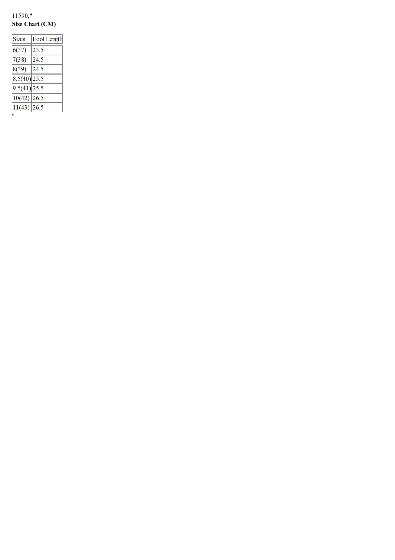 Size Chart (CM)