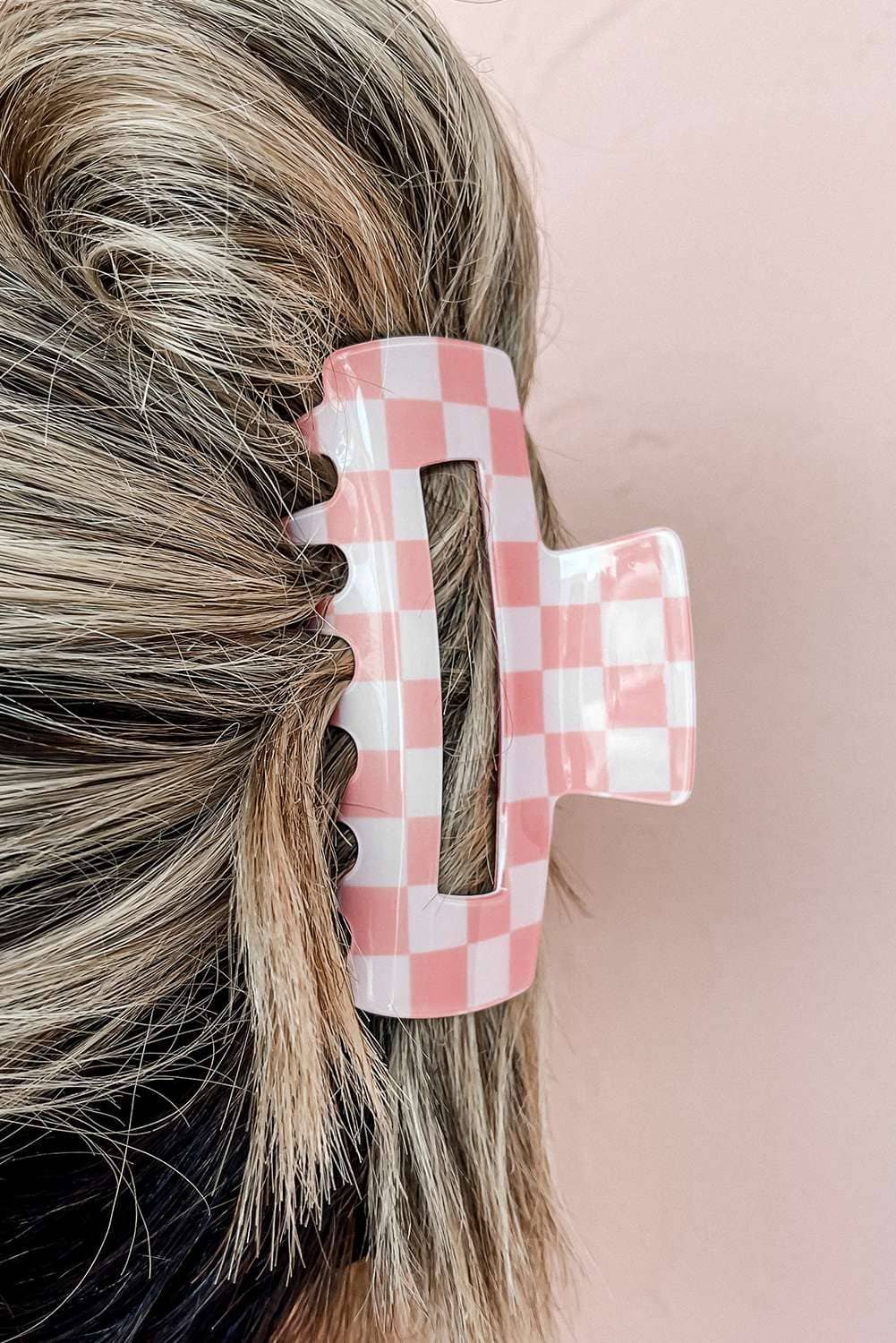 Sachet Pink Checkered Print Hollow Out Hair Clip