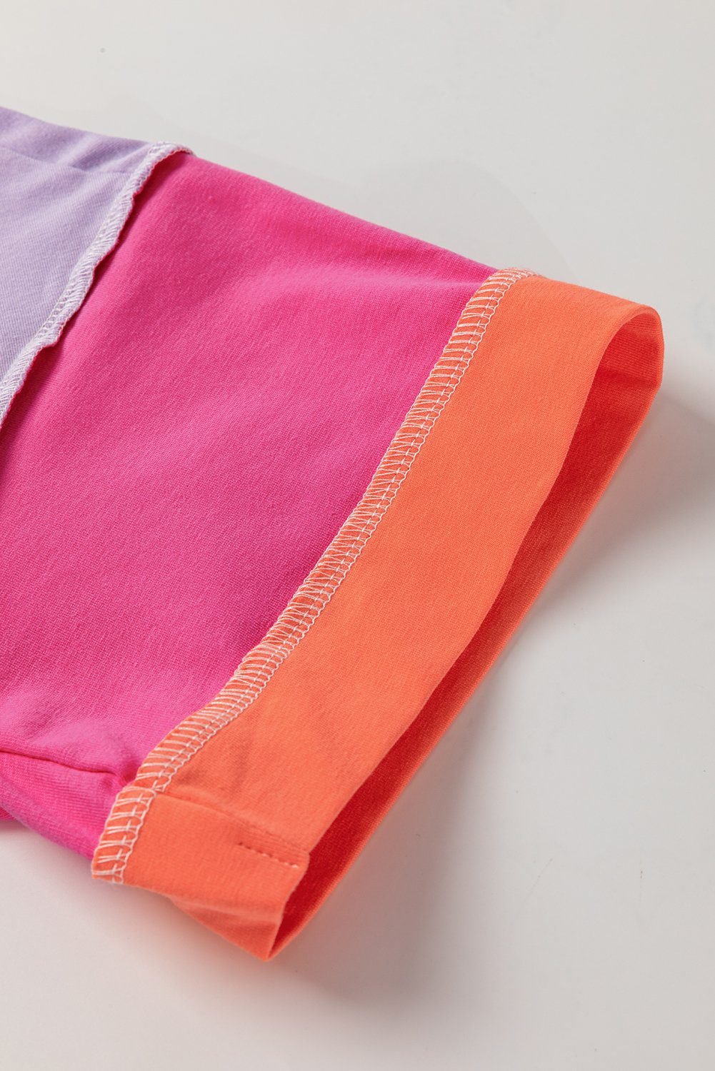 Sachet Pink Floral Color Block Patchwork 3/4 Sleeve Casual Blouse