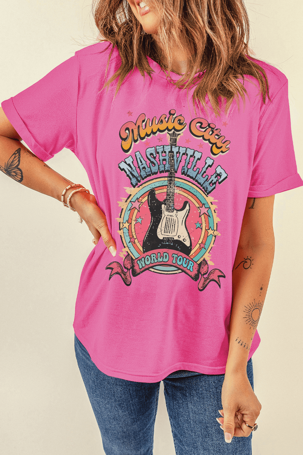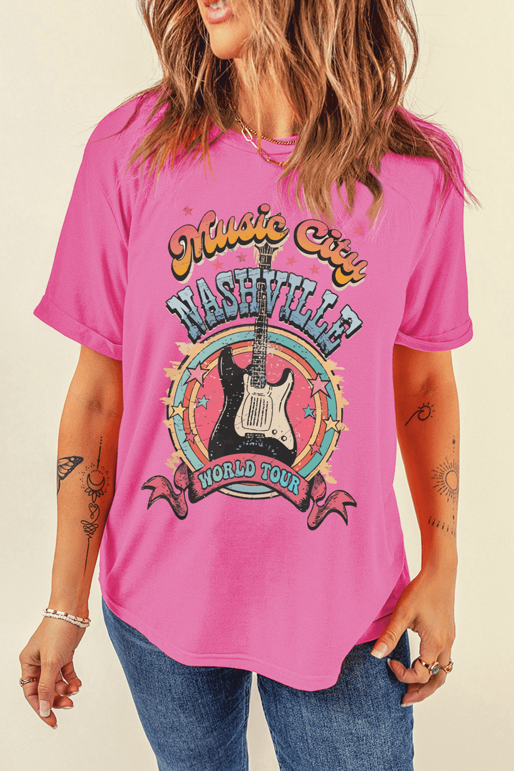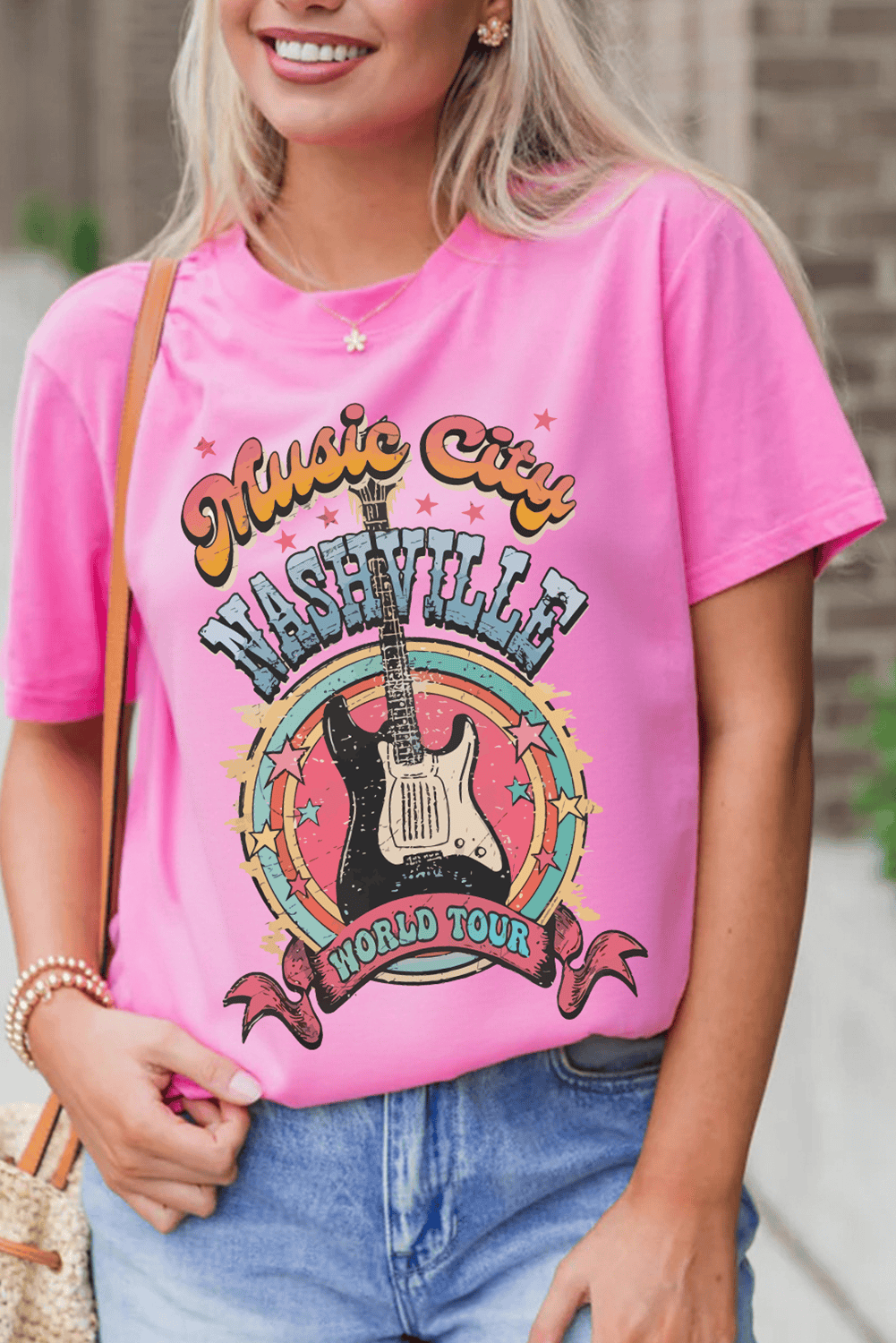 Features a cool Nashville design with acoustic guitar printed on the front.