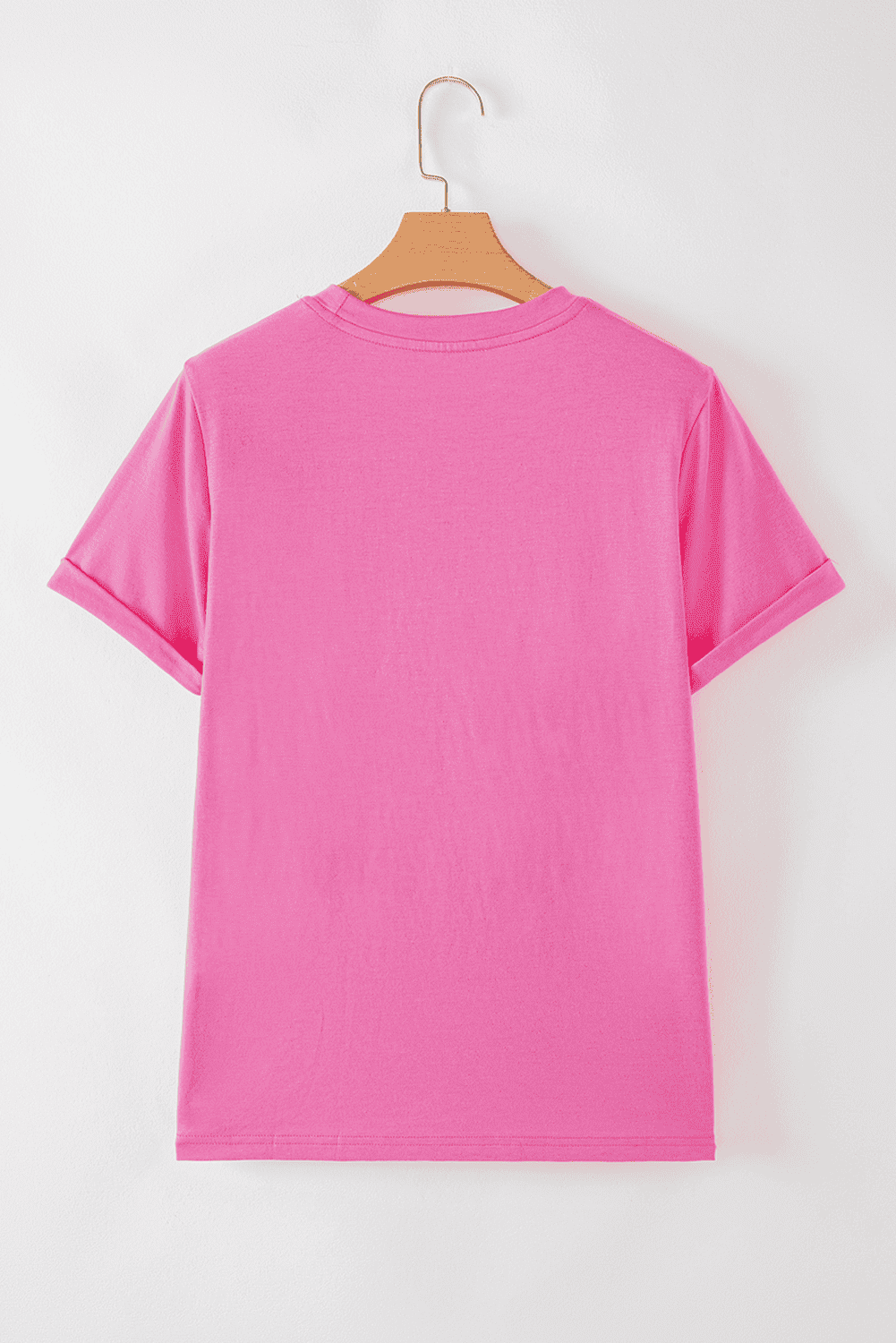 Classic cut, double stitched hem, and cuffed short sleeves.