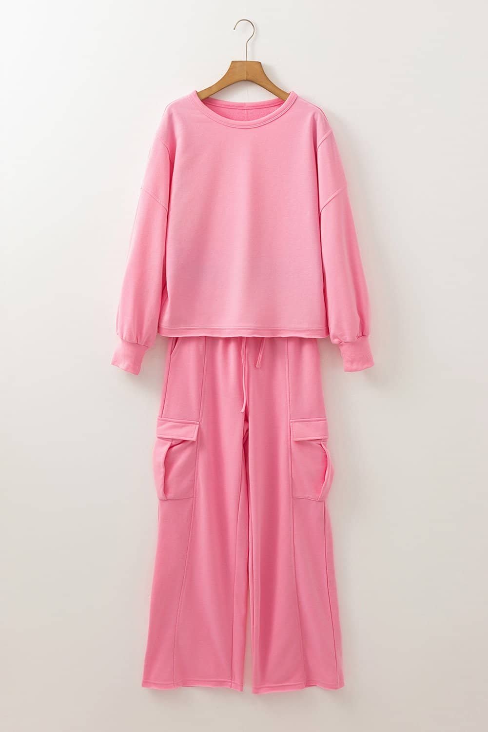 Be the first to review “Sachet Pink Solid Color Patchwork Pullover Top And Cargo Pants Set”