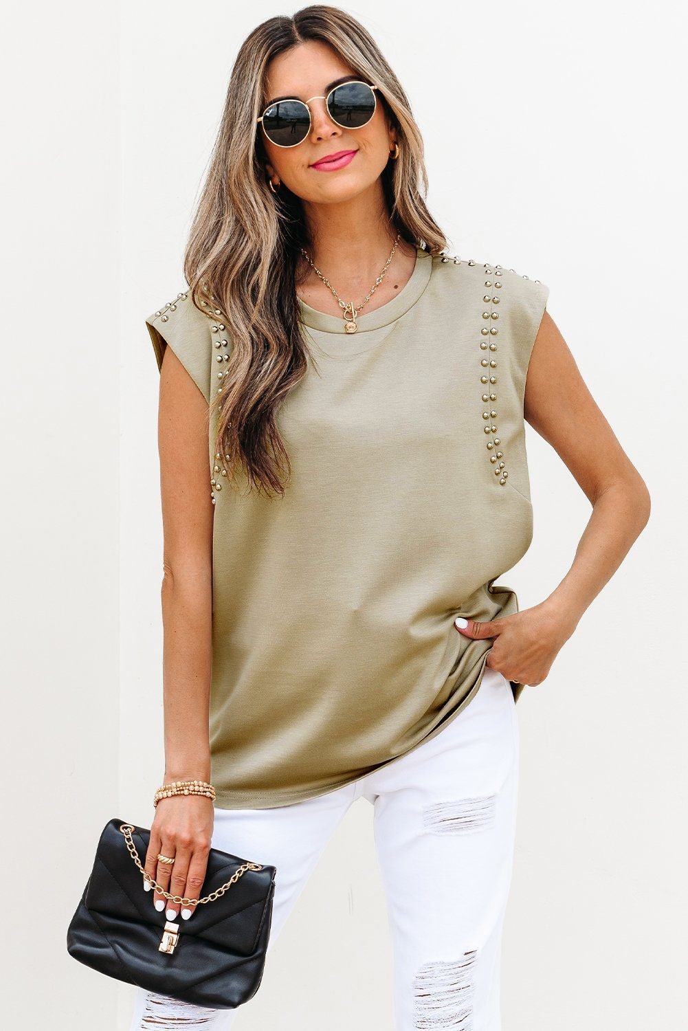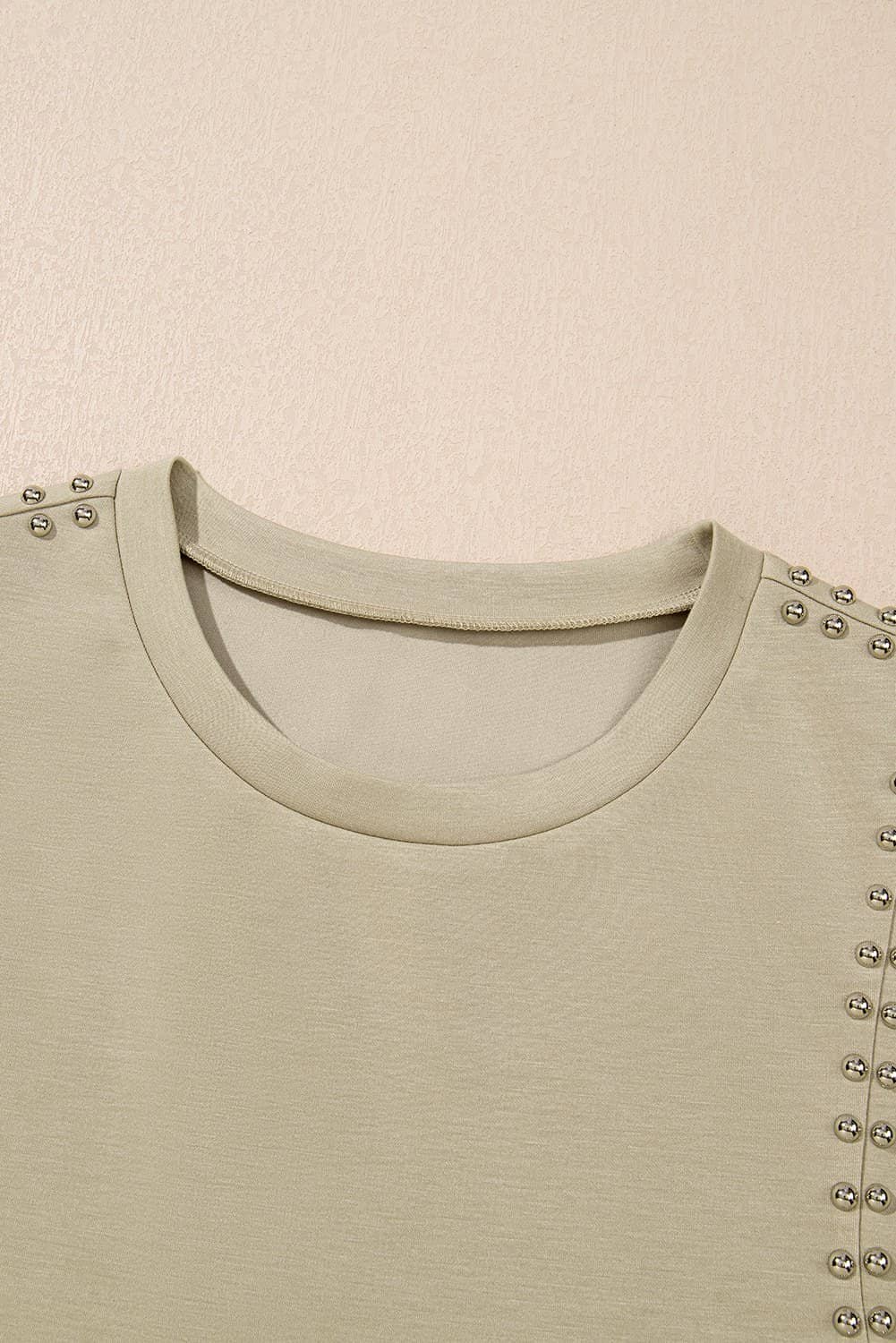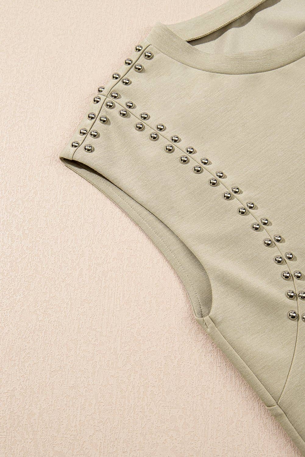 Be the first to review “Sage Green Studded Cap Sleeve Round Neck T Shirt”