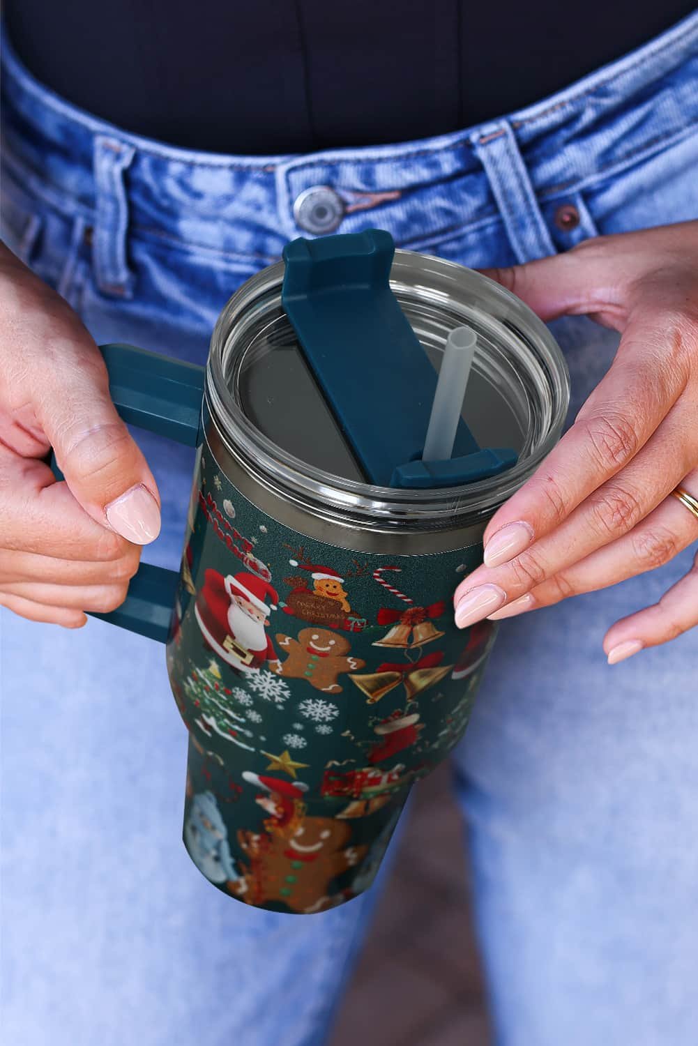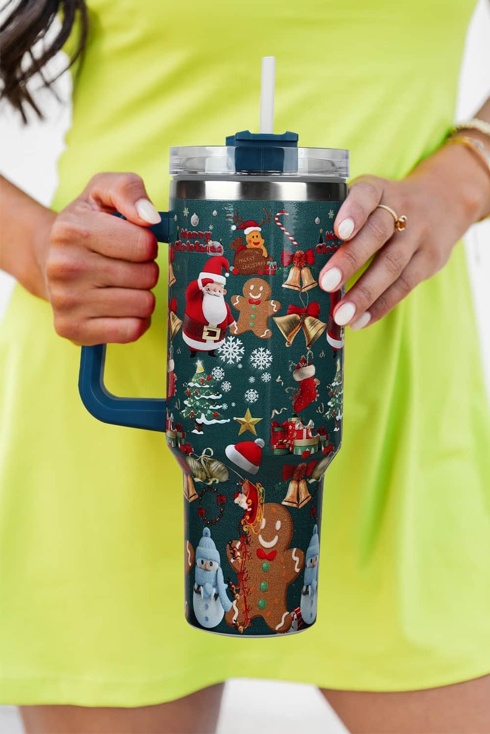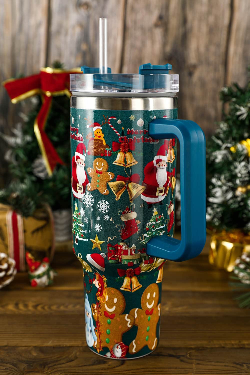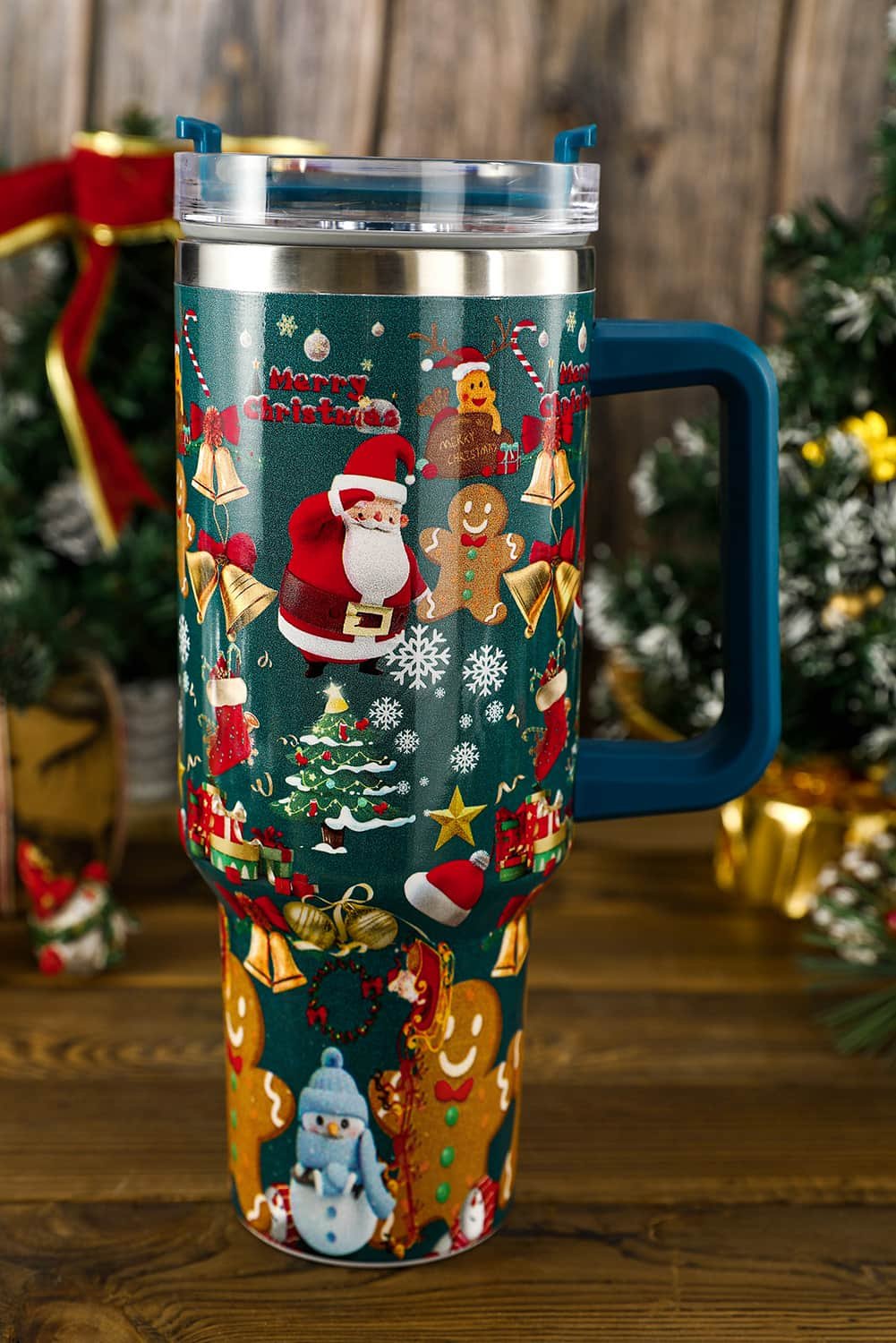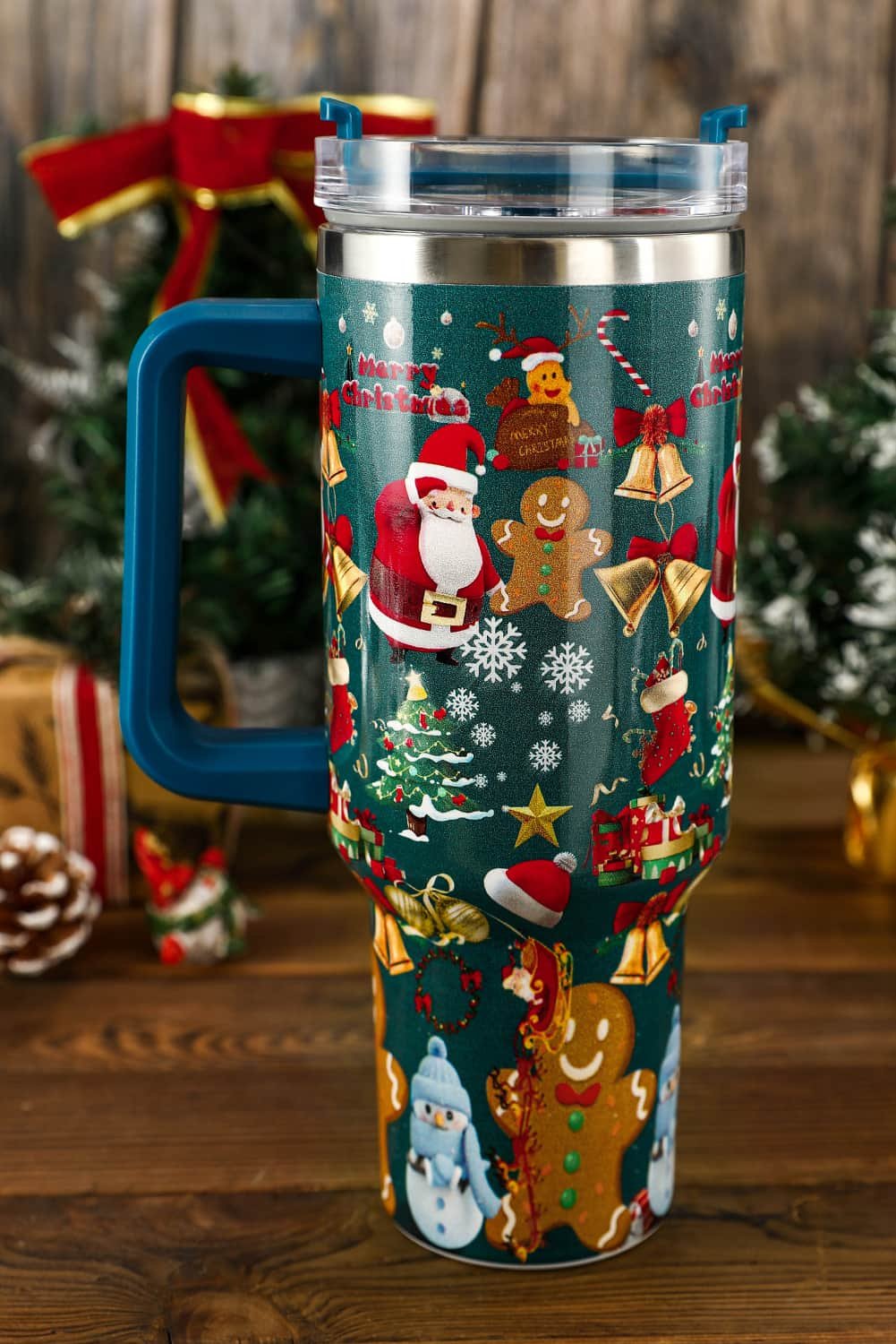 Sail Blue Christmas Pattern Print Handled Stainless Steel Tumblers