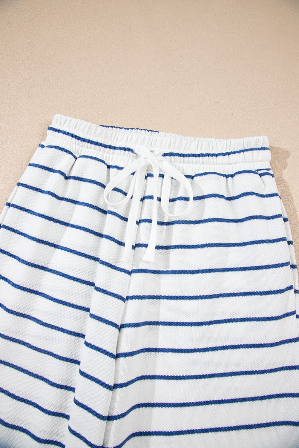 Coordinating drawstring wide leg pants for a comfortable and relaxed fit.