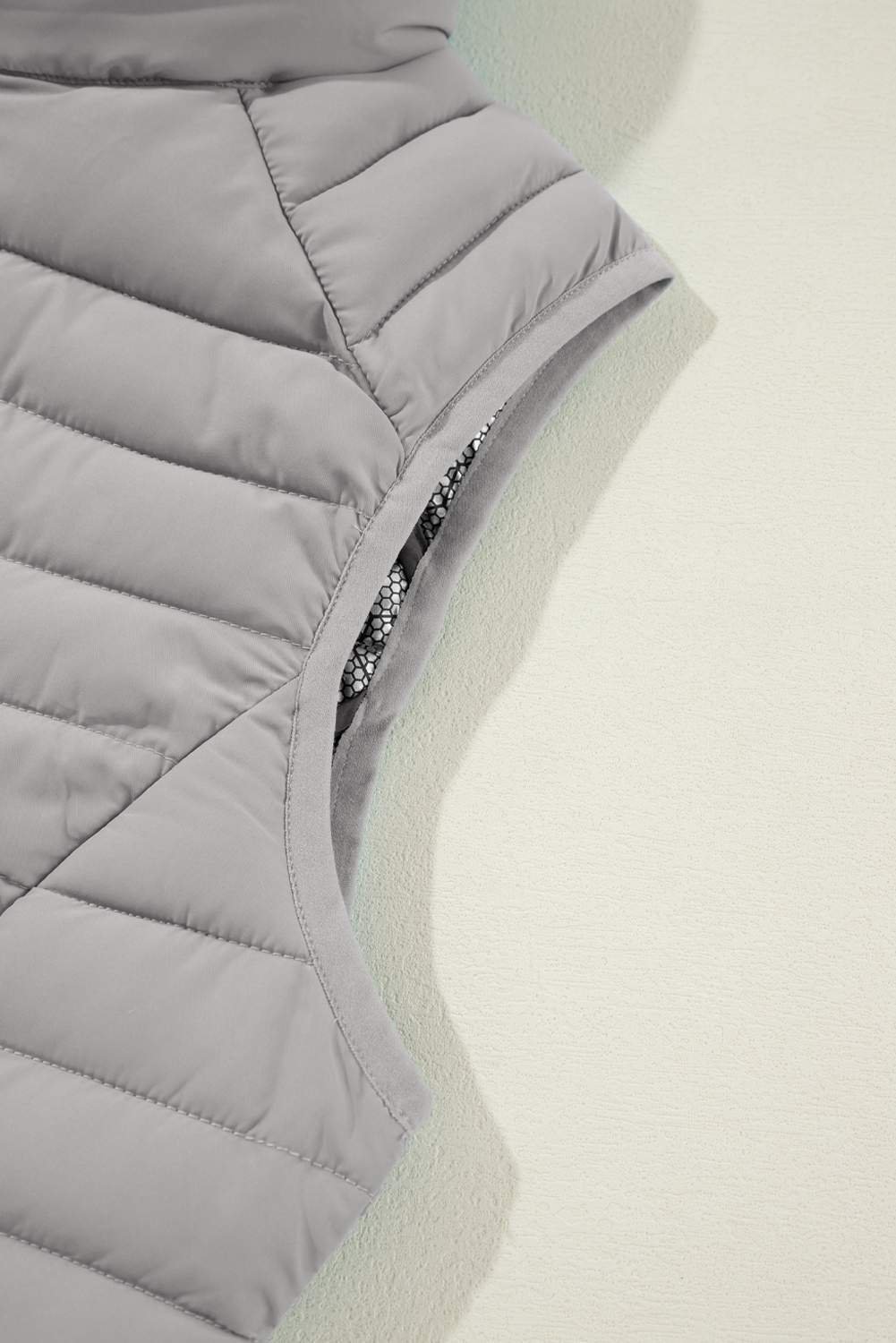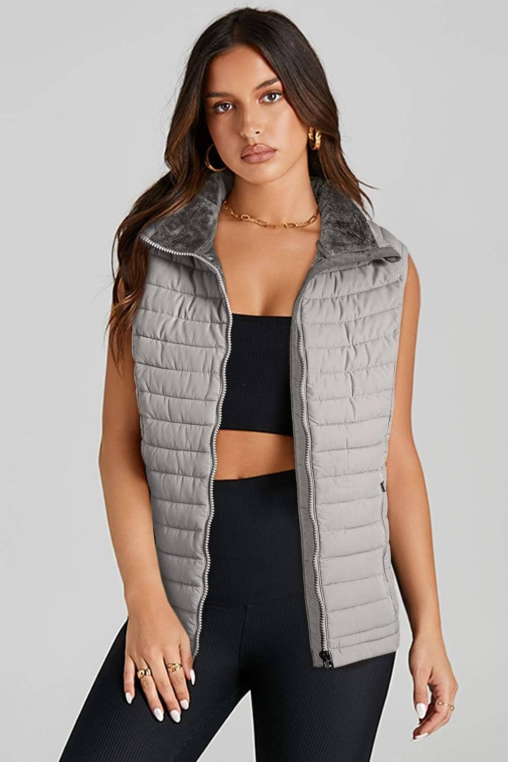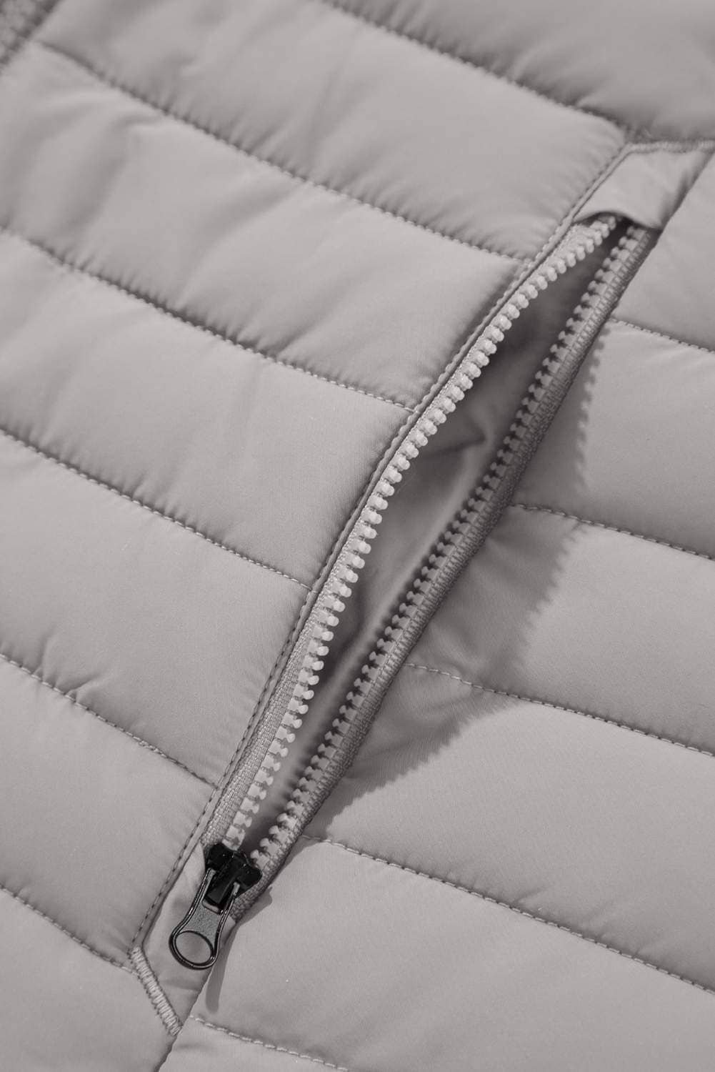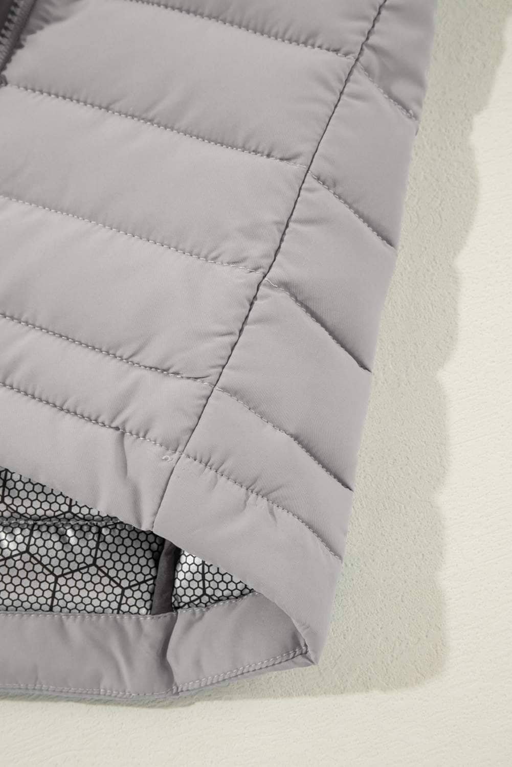 Silvery Plush Collared Quilted Zipped Puffer Vest