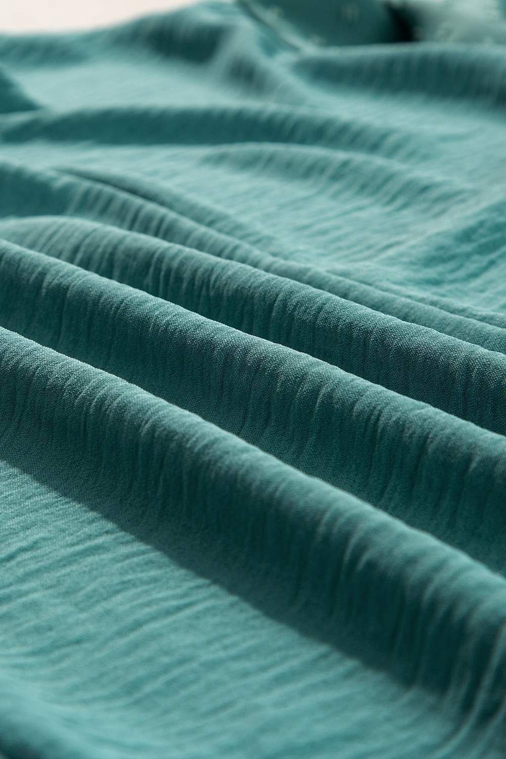 Graceful balloon sleeves with elastic cuffs.