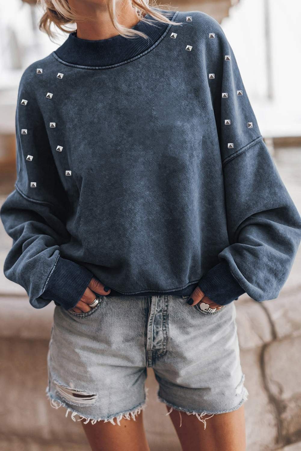 - Elevate your style with intricate beads stud sweatshirt.