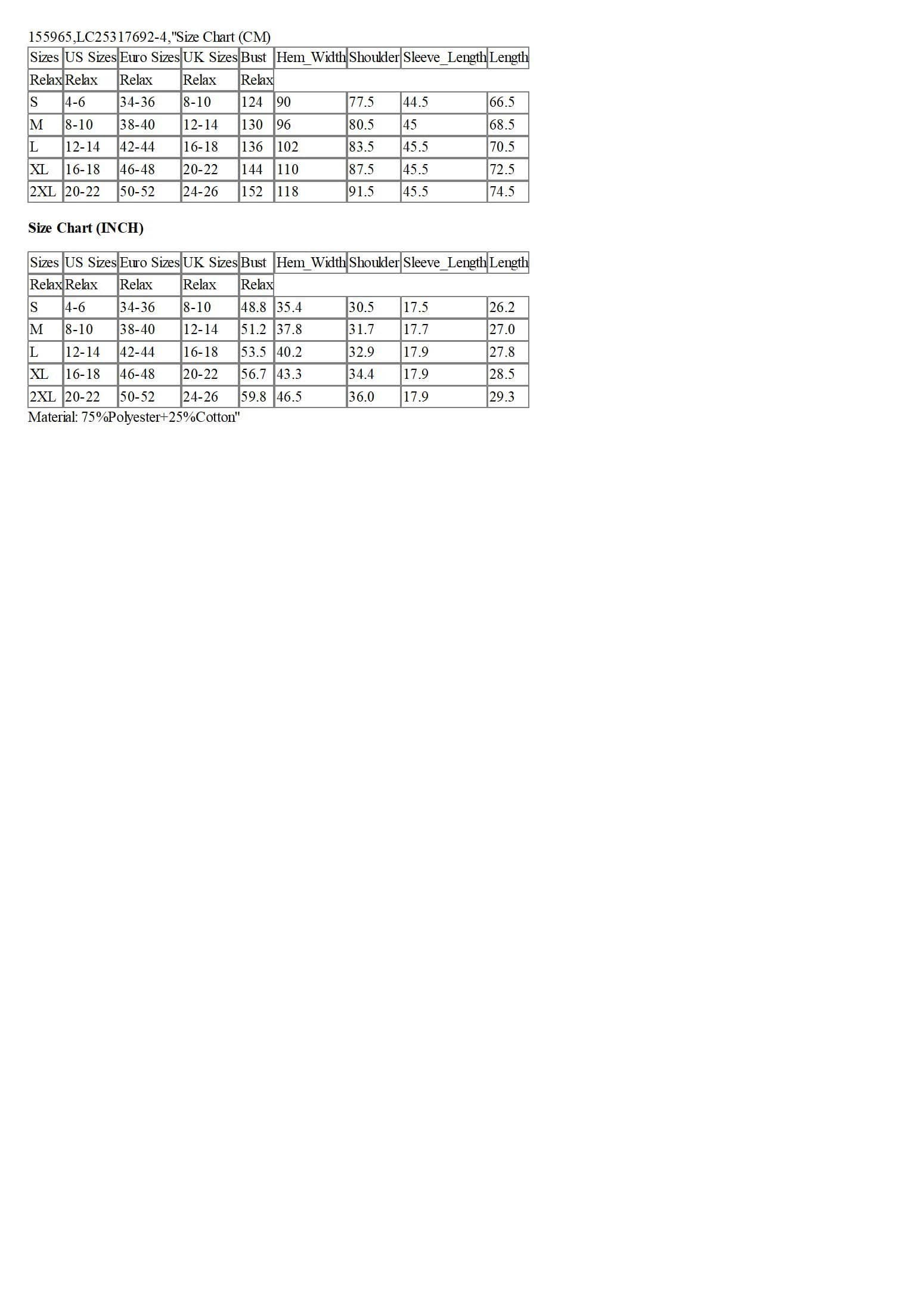 Material: 75%Polyester+25%Cotton