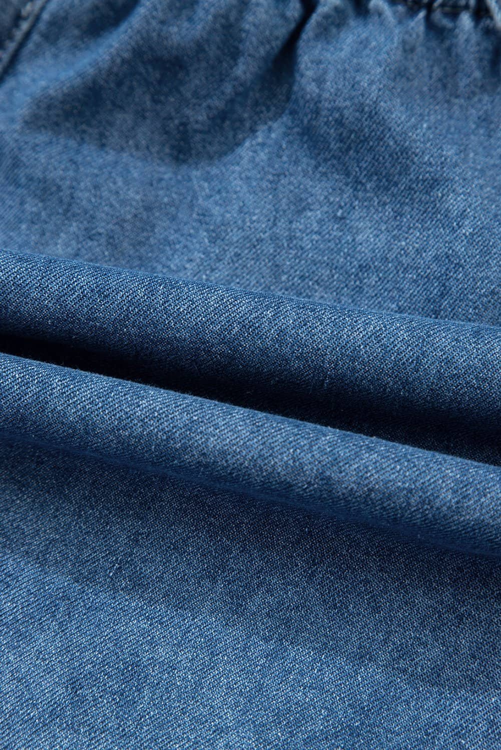 Flared denim romper for a flattering silhouette.