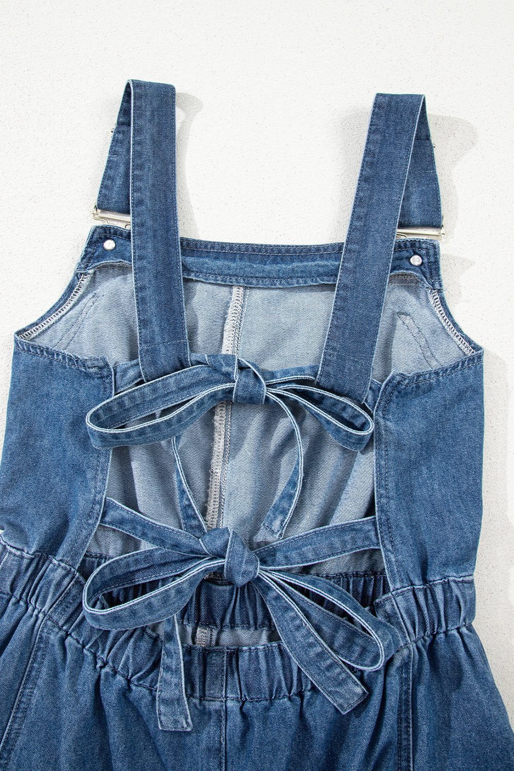 - Bib-style design with tied backless adds a trendy and unique touch.