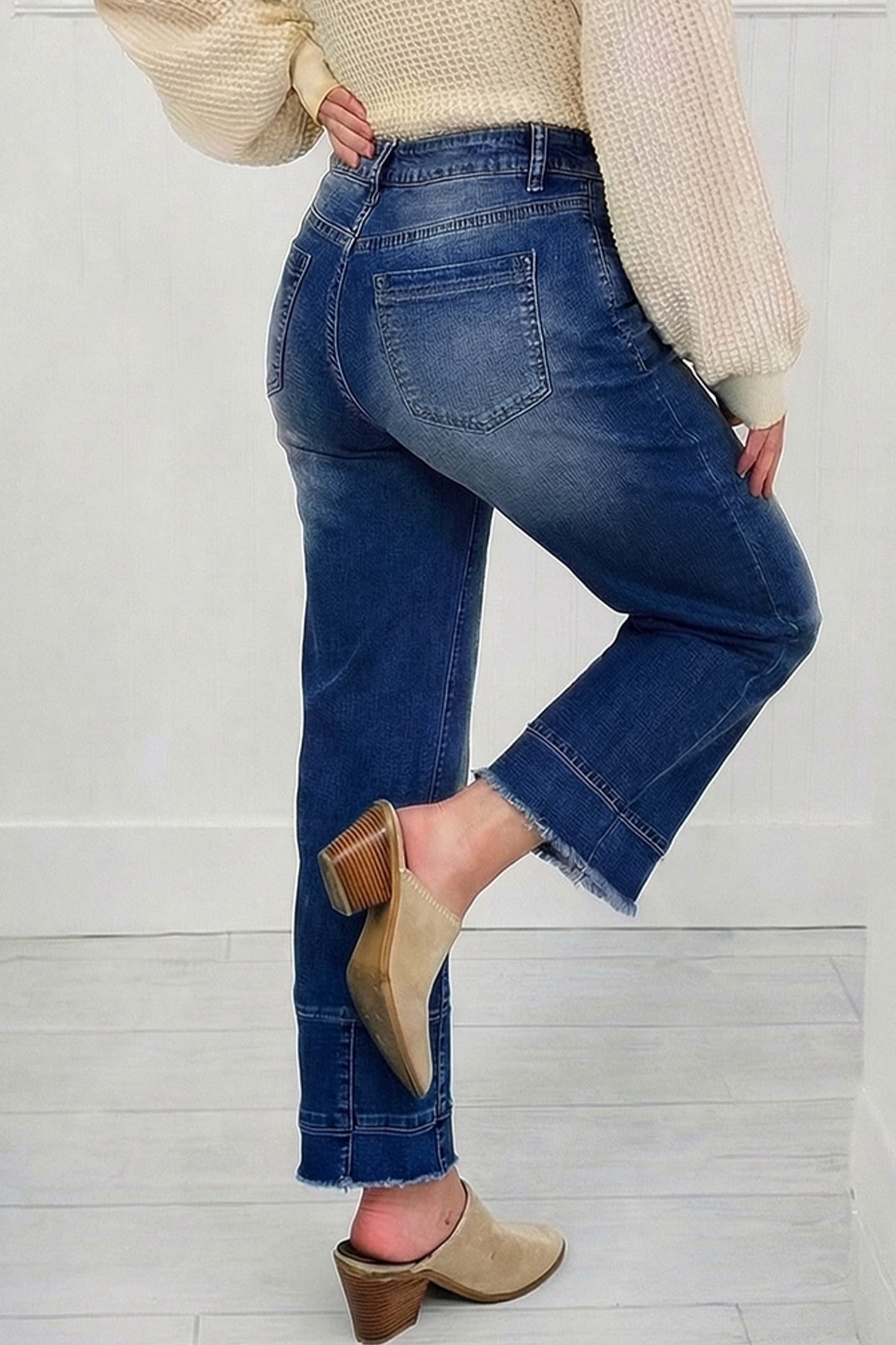 - Chic jeans feature seam detailing for a modern, fashion-forward silhouette.