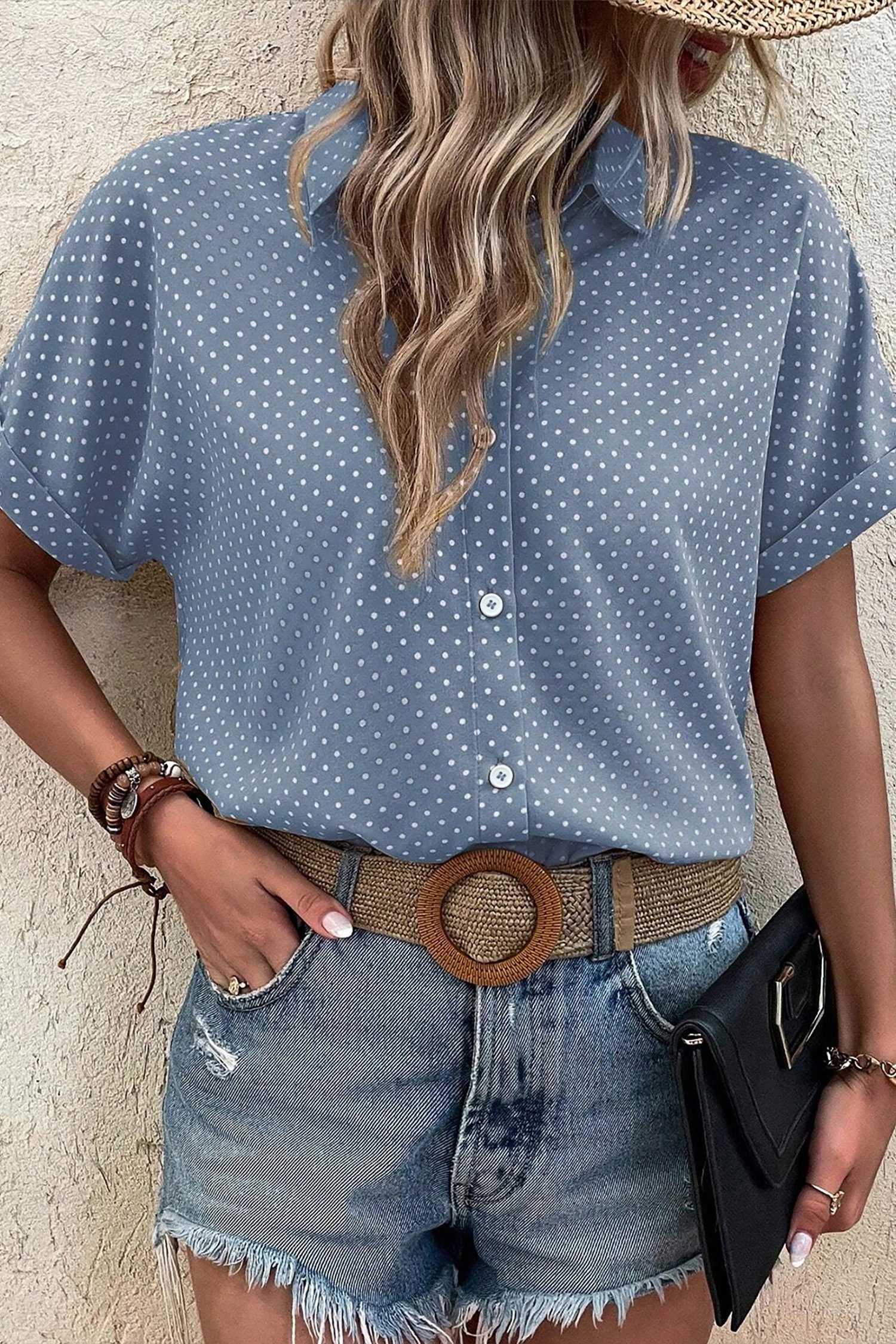 • Elevate your wardrobe with this polka dot shirt.