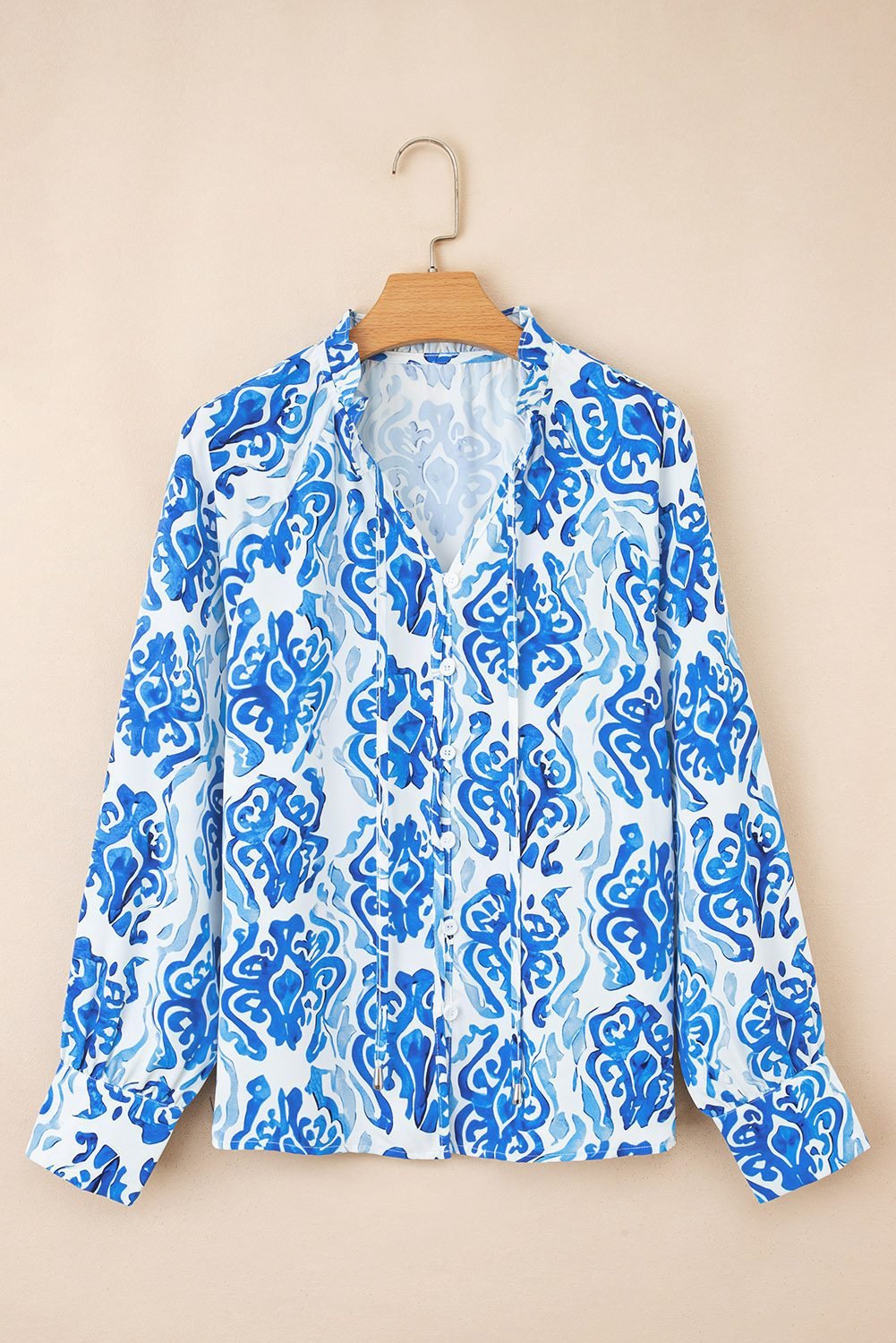 Tie split neck detail adds adjustable, feminine flair to your style.