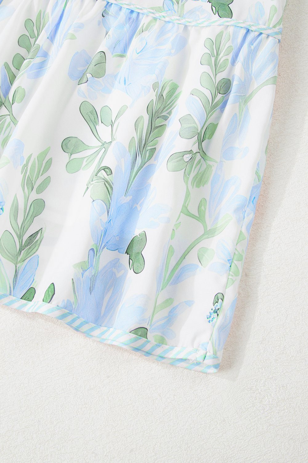 Be the first to review “Sky Blue Floral Contrast Edge Layered Short Sleeve Mini Dress”