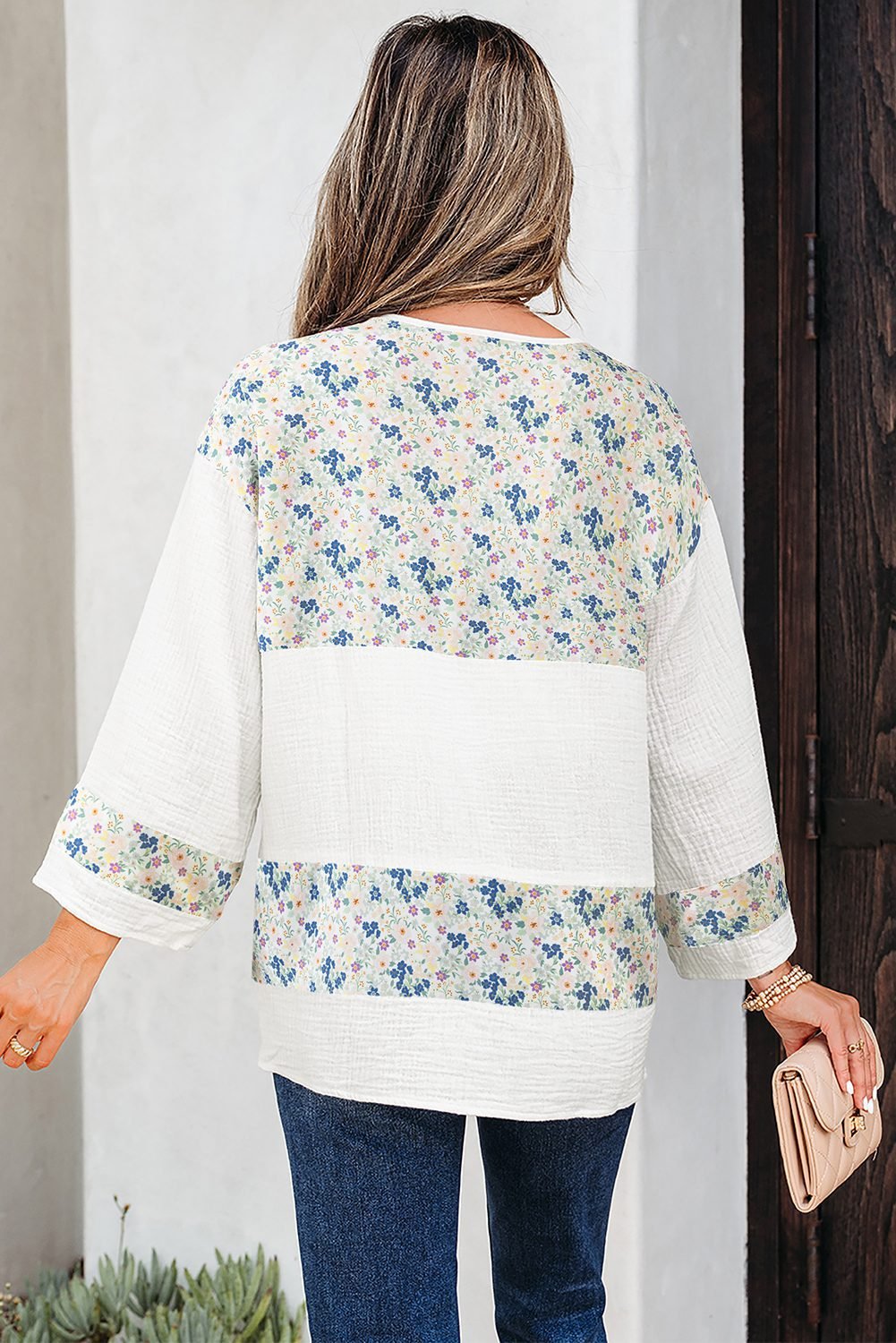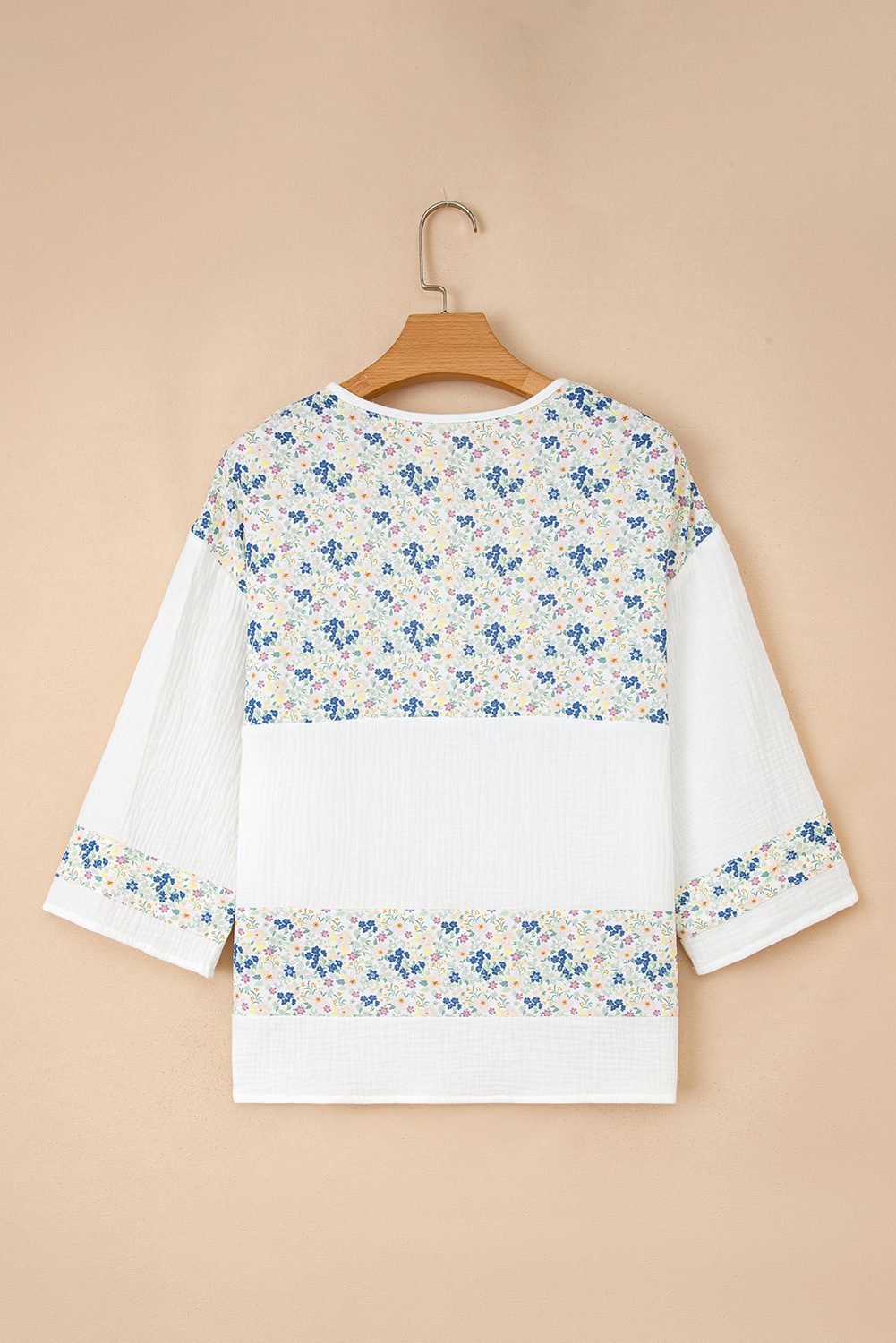 - Elegant floral print blends perfectly with breathable gauze patchwork.